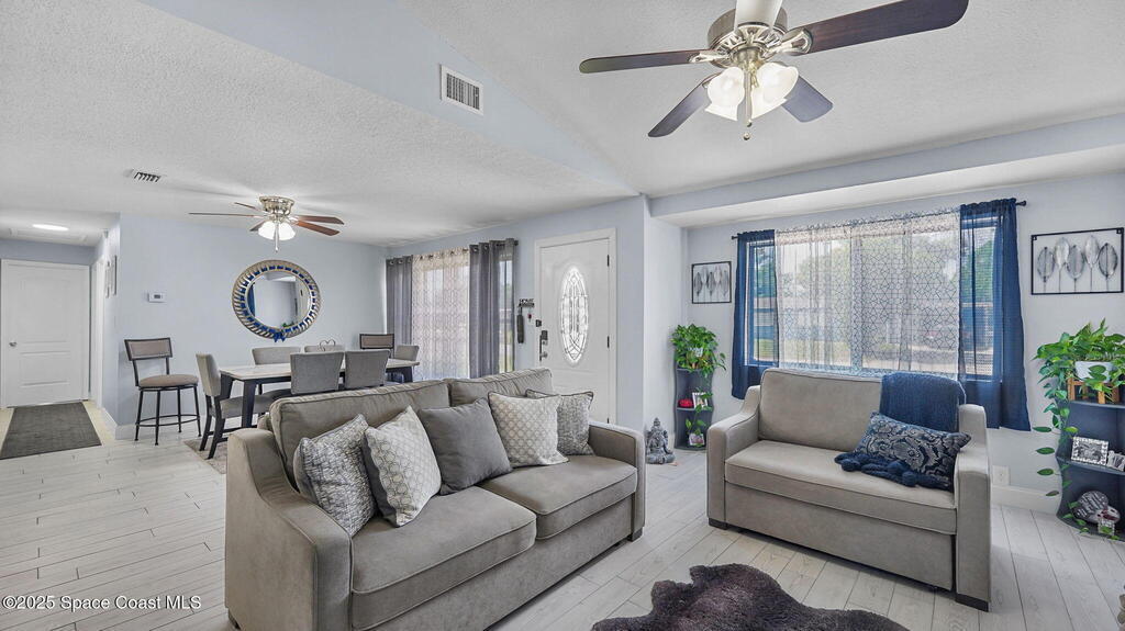 There's No Place Like Home! And this redesigned, concrete block home now has a modern open great room concept! This light & bright layout features a spacious kitchen with white shaker cabinets w/soft close drawers, granite counters, stainless appliances & pantry. The great room flows seamlessly into a dining & living area with updated lighting highlighted by vaulted ceiling & new plank tile flooring throughout. Primary suite includes a walk-in closet and updated Jack n Jill bathroom. Bonus room is perfect office, sunroom or reading nook with doors to patio & backyard. Interior laundry room with washer/dryer included. Step outside to the oversized 25x10 screened patio--ideal for entertaining or relaxing. Fully fenced backyard with room for a pool. Plus 2 sheds. Major components replaced/remodeled 2019 - Roof, HVAC, water heater, elec panel, kitchen & bathrooms. Can be purchased fully furnished - great for seasonal use or short term rental! No HOA!! Close to major roadways & shopping.