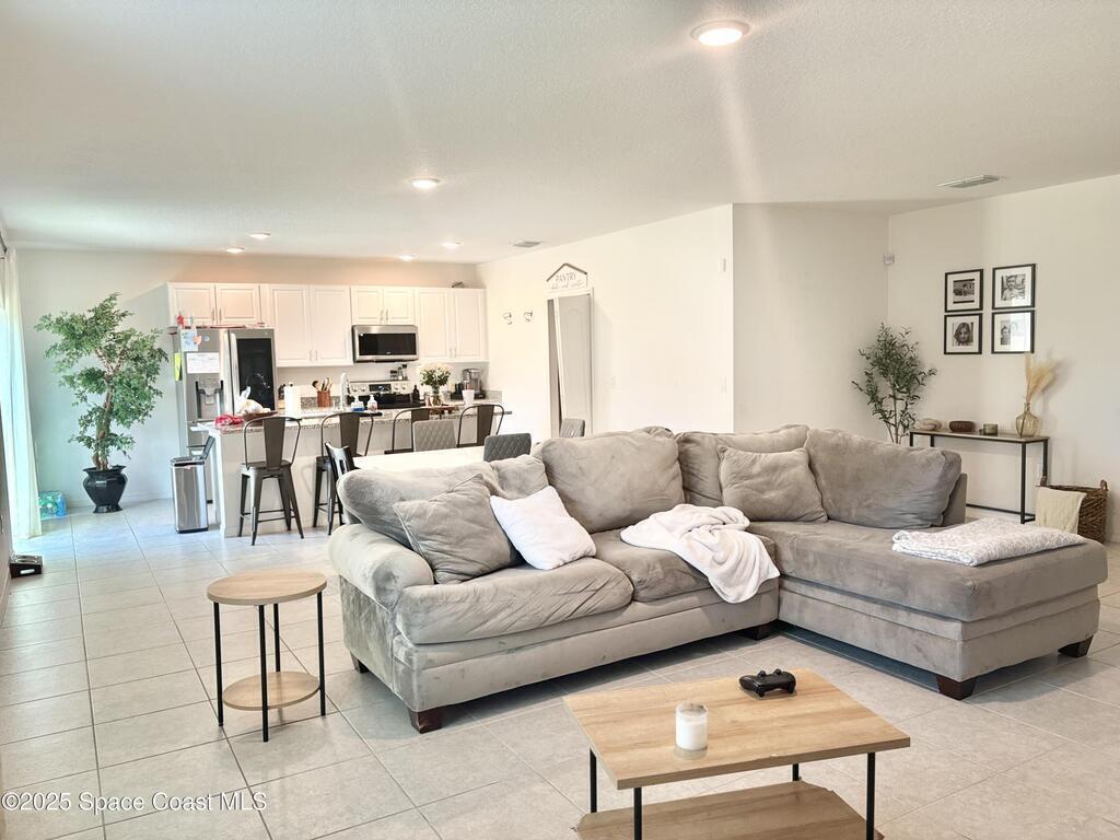 Almost like brand new well-kept 2021 home featuring 4 bedrooms, 2 bathrooms, and an open split floor plan in desirable Northwest Palm Bay. This residence offers a spacious modern kitchen with granite countertops, upgraded cabinetry, an eat-in area, and a large island ideal for gatherings. Tile flooring flows throughout the main living areas with carpet in the bedrooms for added comfort.The home includes an inside laundry room, a 2-car garage, impact-resistant construction features, and city water. The outdoor patio overlooks a generous backyard that provides a blank canvas with excellent potential for future enhancements. With modern finishes, a bright interior, and no HOA, this property offers low-maintenance living in a growing favorable area.