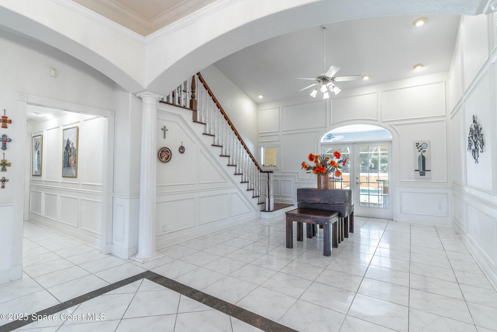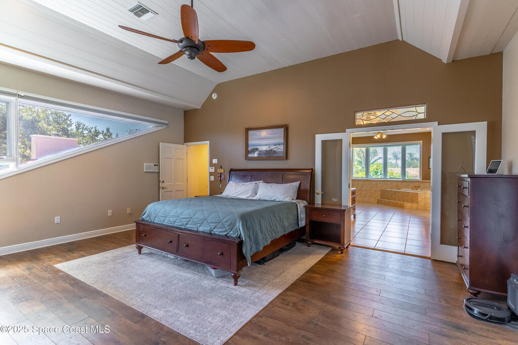Discover one of Brevard County's most unique communities with 1-acre lots and a private 21-slip marina! Nestled between the Banana and Indian Rivers on scenic S. Tropical Trail, this 5, 000+ SF home is a boater's paradise, a mechanic's dream, and a movie lover's retreat. It offers 4 beds, 4 baths, an office, theater room, and 4-car garage. Enjoy true island living on 1 acre with an RV pad and an 8k-lb lift in your dedicated marina slip. The fully fenced yard is framed by oaks, coconut palms, and lush tropical landscaping. A screened, heated saltwater pool with hot tub and bar creates the perfect entertaining space. Inside, a split floor plan provides privacy, enhanced by high coffered ceilings and three fireplaces. The gourmet kitchen is ideal for chefs, while the 900-sf owner's retreat boasts a private balcony and spa-style bath. Home warranty included! Metal roof (2015), solar attic fans (2025), and newer AC (2024). **Assumable VA loan 2.85%**