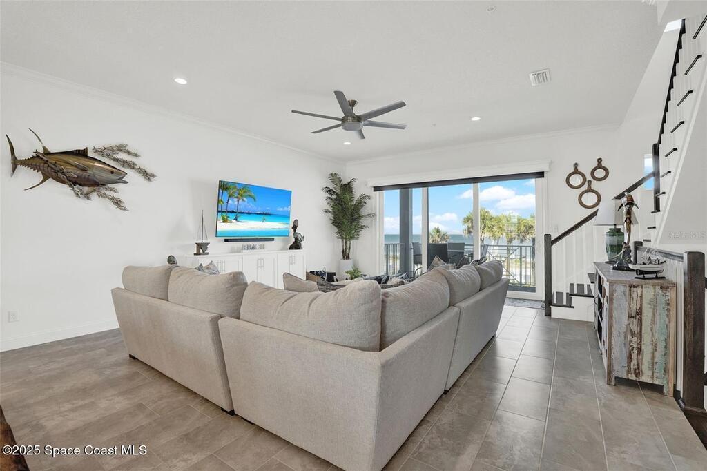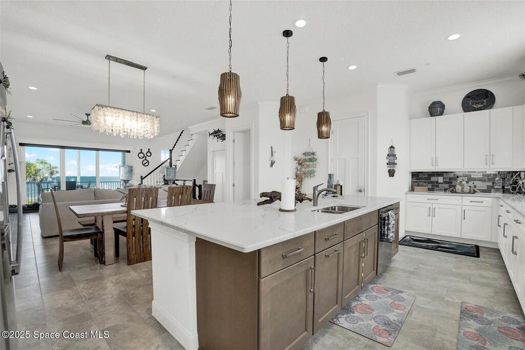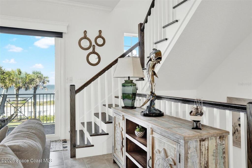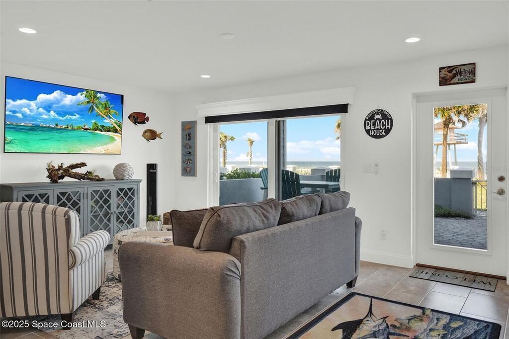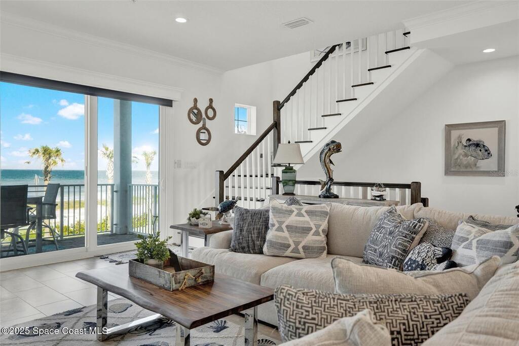 Introducing Oceanview Luxury Townhomes in the exclusive Verona Oceanside community, just steps from the serene, traffic-free sands of Ormond Beach. Offering over 2, 276 square feet of premium coastal living, this three-story private residence is thoughtfully designed for those who crave effortless beachside luxury with breathtaking ocean views and private beach access. Enter through a charming paver courtyard and covered lanai, setting the tone for relaxed sophistication. The first floor welcomes you with a spacious flex area--ideal as a secondary living space or guest retreat --and a convenient half bath. From there, ride your private ELEVATOR to the second level, where an open-concept layout unfolds to reveal a gourmet kitchen complete with a grand island, 42'' wood cabinetry, granite countertops, stainless steel appliances, and a walk-in pantry. The adjoining living and dining area flows seamlessly onto a covered balcony, perfect for soaking in the sea breeze and ocean views.