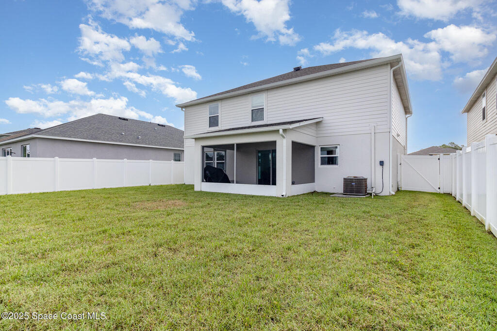 Welcome to your own slice of paradise! This stunning 2-story waterfront home captures the essence of the Florida lifestyle. Imagine starting your mornings with coffee on the charming front porch and winding down your evening on the screened back patio, all while enjoying peaceful water views and warm coastal breezes. Boasting 4 bedrooms and 2.5 baths, this home is designed with both comfort and functionality in mind. The oversized primary suite is a true retreat, featuring dual sinks in the primary bath and a luxurious custom walk-in closet. The heart of the home is the open concept kitchen with island, granite countertops and room to entertain. Two generous living areas offer flexible space for relaxing, hosting guests, or creating the perfect home office or media room. Step outside to a fully fenced backyard ideal for pets or play with direct water views. This home is perfect for embracing indoor-outdoor living year-round. At this home every day may feel like vacation.