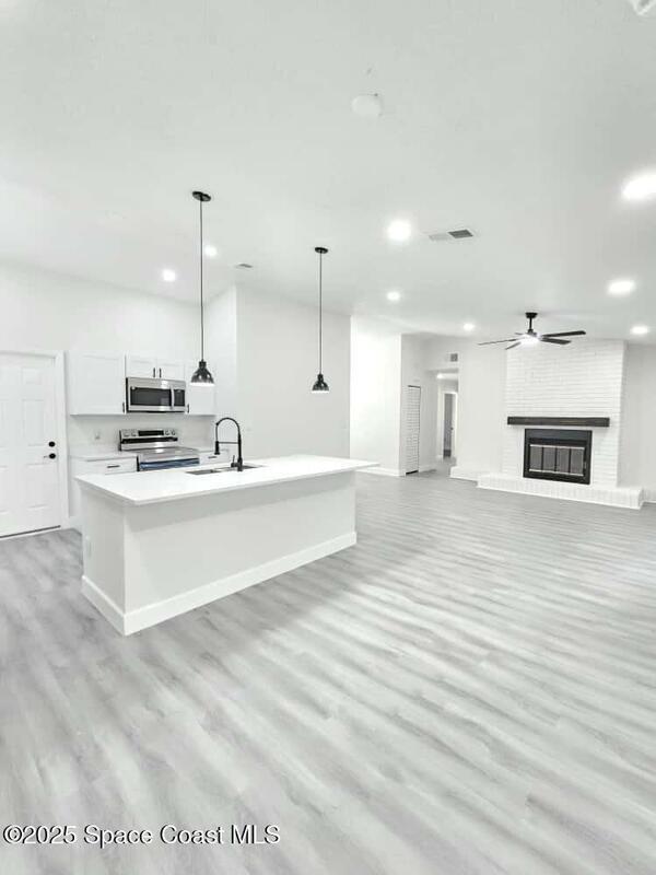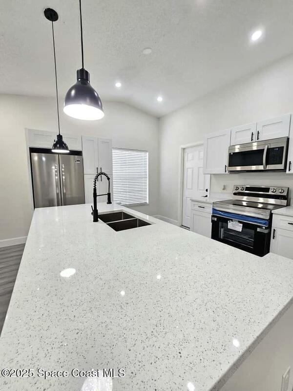 Welcome home!! Don't miss the opportunity to own This Renovated 3Bed/2Bath 1, 445 sqft home. Located in a peaceful area of Titusville is the ideal place for a family to thrive. With No HOA, this home boasts NEW ROOF 2025, New LVP flooring through a perfect floor plan, with an extra spacious living room, Open Kitchen concept with a beautiful island, New finishes, new kitchen cabinets, Quartz countertops, new stainless steel appliances, Fresh interior and exterior paint, new light fixtures, modern bathroom finishes, water heater, two car garage, a huge bonus room, and last but not least, the spacious backyard, with plenty of room for the children to play, perfect for family gatherings, BBQs, or simply waiting for your best ideas of Florida Lifestyle.