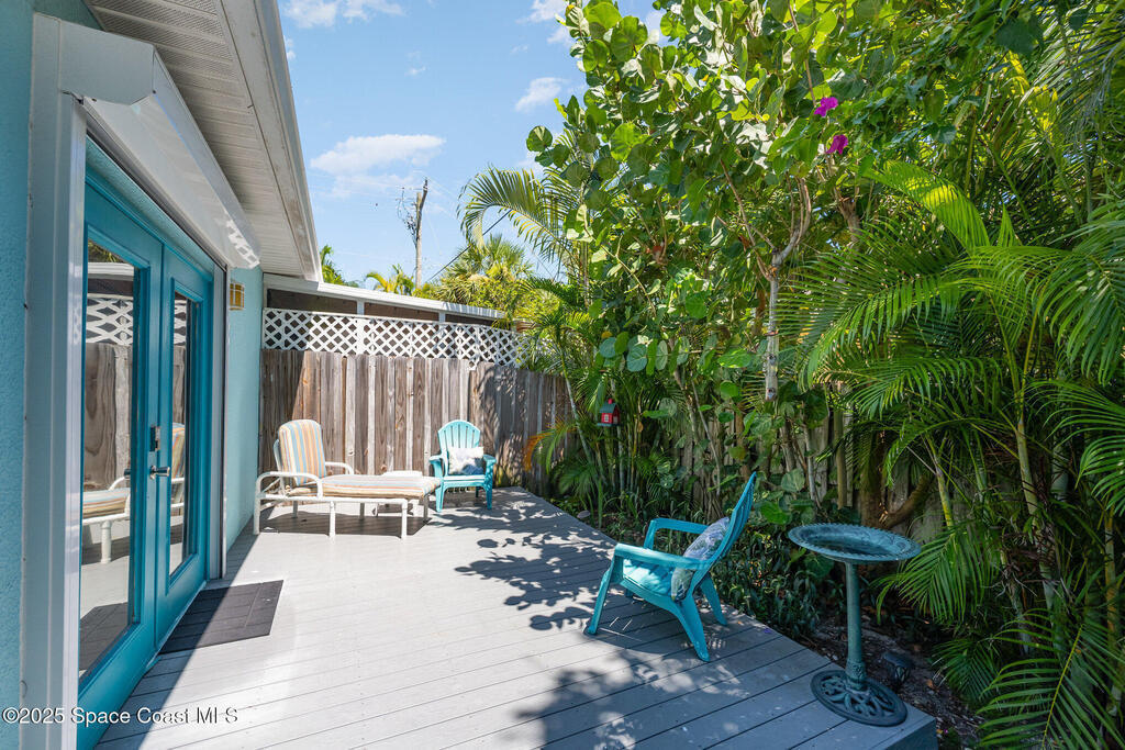 NEW PRICE! Use as a primary residence, investment to produce income or as a vacation home to get away from the snow. Tropical WEEKLY rental gem or have your own get-away! Currently top-rated on a leading vacation site, Cape Canaveral. Can be turnkey, fully furnished (negotiable, exterior furniture excluded) 2-bed, 2-bath unit with own private Garage. Enjoy coastal living! Bike or walk a few blocks to the beach! This excellent beachside 1/2 Duplex used as Single-family home could also be great investment property (weekly rentals permitted) or your new coastal retreat! NO HOA. Built new in 2005. FURNISHINGS NEGOTIABLE (excludes exterior furniture). Newer Roof (2021) Fresh coastal-paint (2025) Newer AC (2022) Newer Water Heater (2021) Newer vinyl decks on side and back patio (2021) Low maintenance ''Turf Lawn'' behind fences on side yard and back yard. Easy access to Port, A1A, restaurants and Beach! Close to Rivers, Ocean & quick drive to Orlando!!