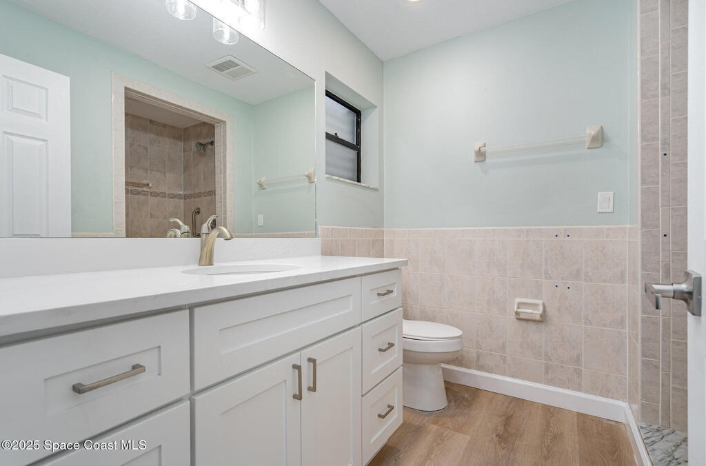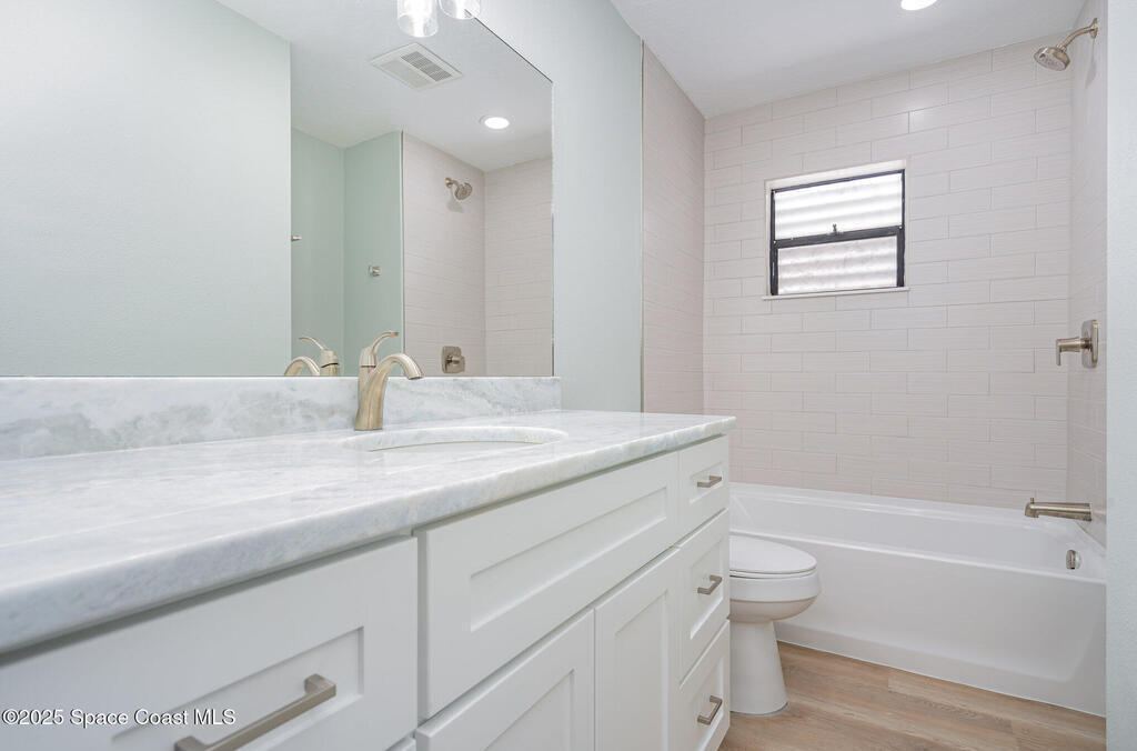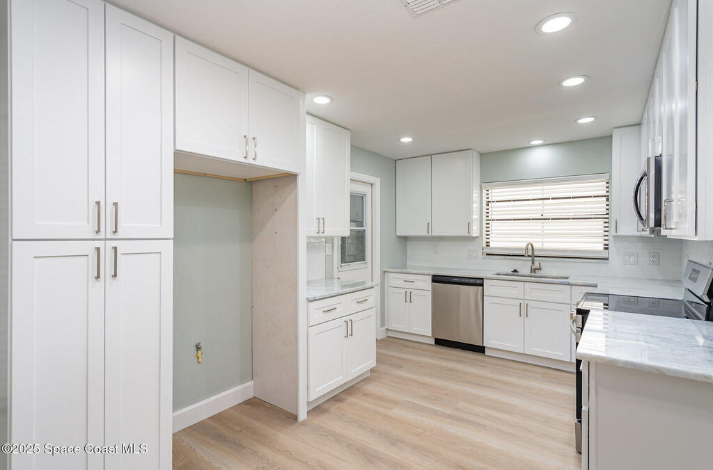 **1% buy-down rate with preferred lender** This beautifully updated SOLAR home features all-new flooring and a stunning kitchen complete with quartz countertops, 42-inch cabinets, stainless appliances, & subway tile backsplash. Both bathrooms have been fully renovated with quartz counters--the primary suite boasts walk-in tile shower, while the guest bath offers a tub/shower combo with subway tile surround. Step outside to your private backyard oasis with a splash pool & large, fenced yard--perfect for relaxing or entertaining in peace. Other upgrades include a 2024 roof, updated plumbing & electrical, new gas water heater, and an oversized 2-car garage. Energy-efficient solar panels power the whole home, while beautiful Bahama shutters on every window enhance the home's modern beach style. Tucked into a quiet, established neighborhood, this move-in ready home offers the best of beachside living--just a short walk to beaches, restaurants, and parks
