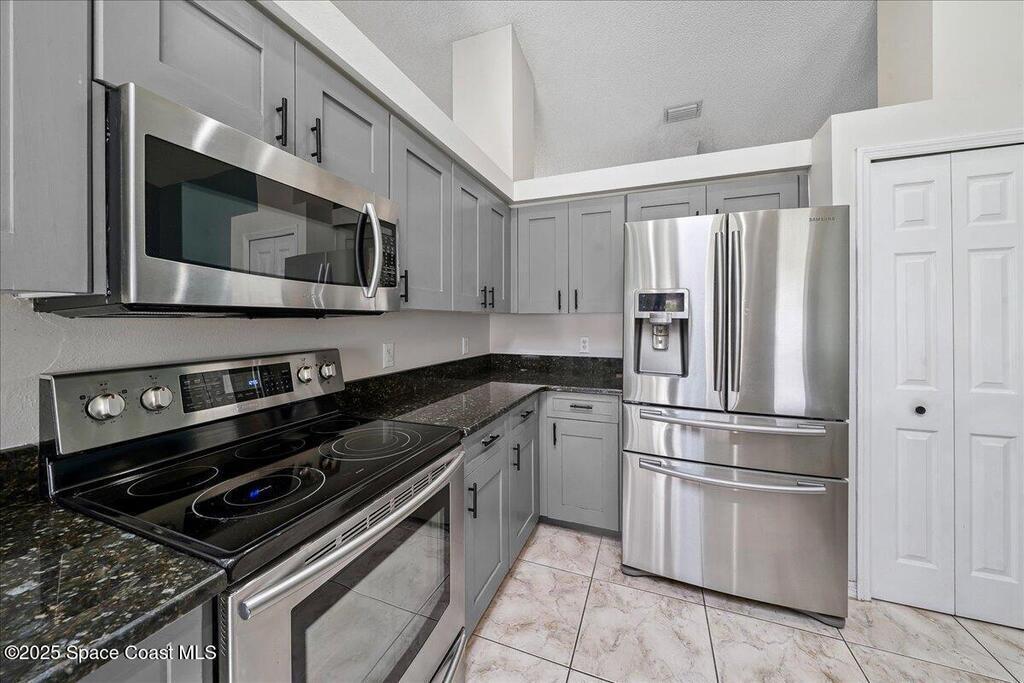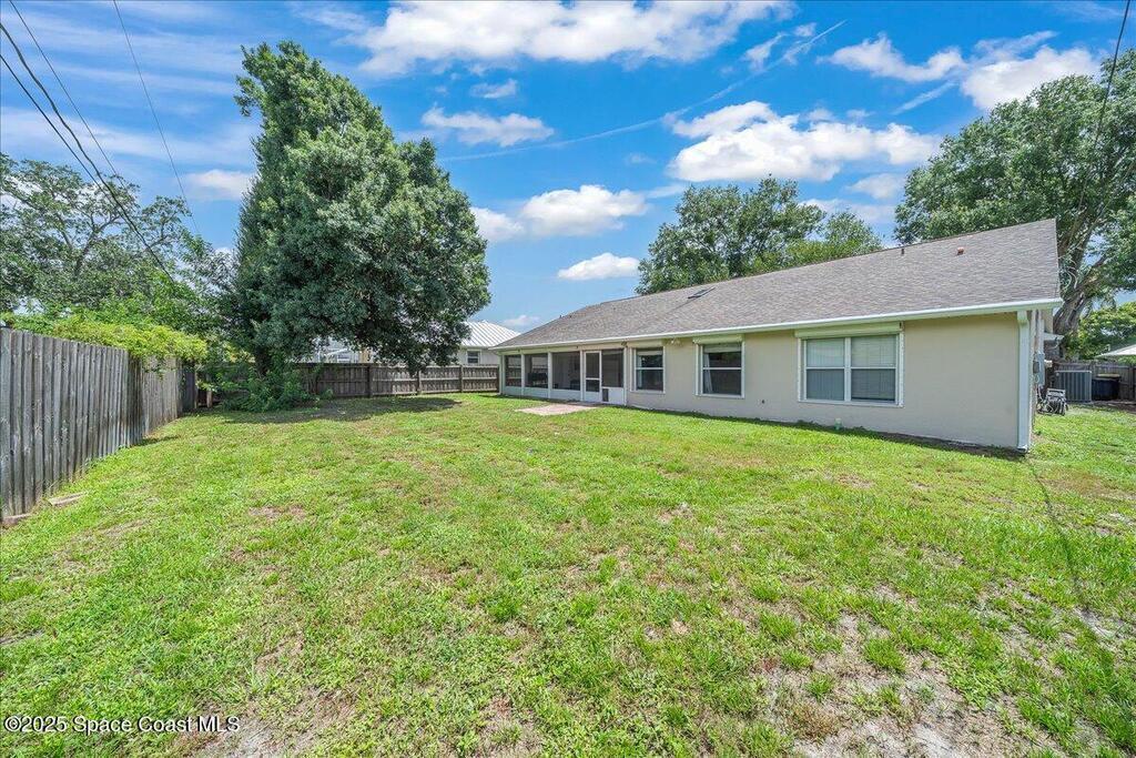 Welcome to this spacious and beautifully maintained 4-bedroom, 2-bathroom home nestled in a quiet, secluded Palm Bay neighborhood. This move-in-ready residence blends style, comfort, and convenience. Inside, you'll find granite countertops in the kitchen and bathrooms, tile flooring throughout the main living areas, and a combination of laminate and carpet in the bedrooms. The large laundry room includes a washer and dryer and provides ample storage. The open layout makes entertaining a breeze. Enjoy outdoor living on the spacious back patio with direct access to a full bathroom -- ideal for gatherings or relaxing evenings. The fully fenced backyard offers privacy and security. Conveniently located just minutes from I-95 and directly across from Hammock Landing, this home puts shopping, dining, and entertainment at your doorstep. Don't miss the opportunity to own this well-maintained gem in one of Palm Bay's most desirable locations!