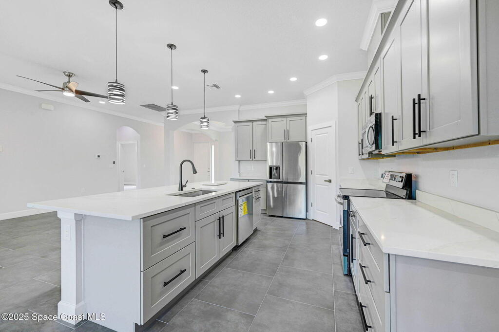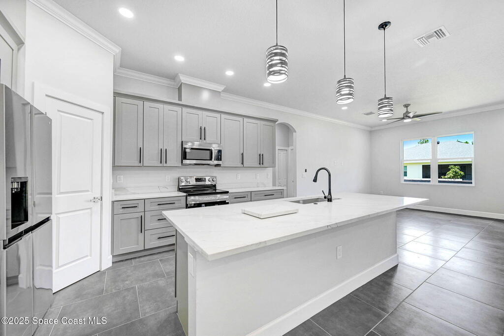 If you are looking for a cookie cutter home, this isn't for you. CUSTOM 4BR/3BA HOME ON OVERSIZED CORNER LOT - Brand-new 2, 361 sq ft custom home with luxury finishes throughout **Built on 3500 PSI foundation**! Open- Concept living with soaring 10' tray ceilings creates an expansive, airy feel perfect for modern family living.PREMIUM FEATURES: Gourmet kitchen: quartz counters, 42'' uppers, custom lighting, Spa-style primary bath Jacuzzi Jet Tub, Elegant porcelain tile in living areas & plush carpet in bedrooms, Hurricane-impact windows for peace of mind 2-car garage with storage Expansive covered patio for year-round Florida entertaining. RARE OVERSIZED CORNER LOT - incredible space for your dream pool, lush gardens, or outdoor paradise! UNBEATABLE LOCATION: schools & premier shopping less than 5 minutes away. Family-friendly neighborhood with everything you need nearby. This isn't your typical cookie-cutter build - it's a meticulously crafted custom home designed for luxury living.