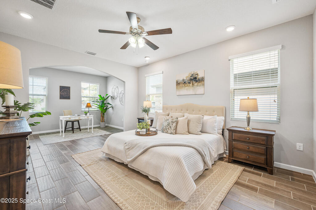 BLACK FRIDAY PROMOTION ASK AGENT. Ready to go-Beautifully updated and move in ready 4BD/2.5BA home in desirable Viera, zoned for top-rated Viera Schools. The spacious primary suite on the main floor includes a private office/den, dual vanities, soaking tub, and walk-in shower. Freshly painted (2025) and professionally cleaned--this home is truly turnkey! Open-concept living and dining with no carpet. The kitchen features solid wood cabinets, granite countertops, island, and brand-new stove. Upstairs offers a loft, 3 bedrooms, and a full bath. Laundry room with washer/dryer included. Enjoy a fenced backyard with pergola and paver patio, perfect for entertaining. 2-car garage, storm shutters, and a paver driveway. Virtual staging pictures for furniture placement ideas only. Conveniently located near I-95, US-1, Viera East shopping (including Whole Foods NOW OPEN), dining, Patrick Space Force Base, and beaches. Schedule your showings today!