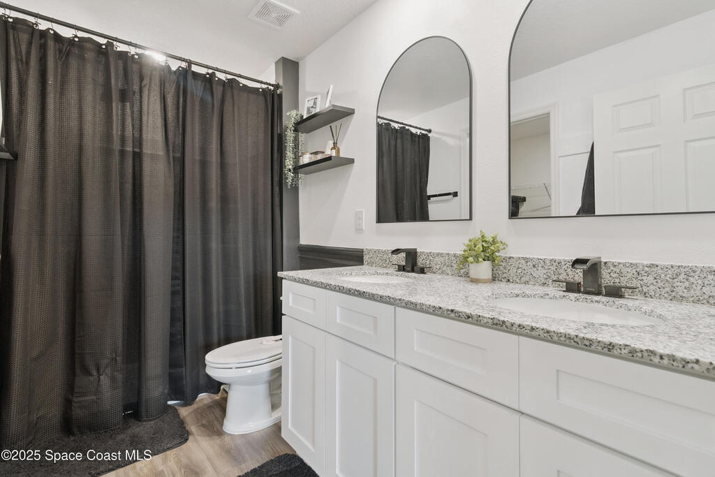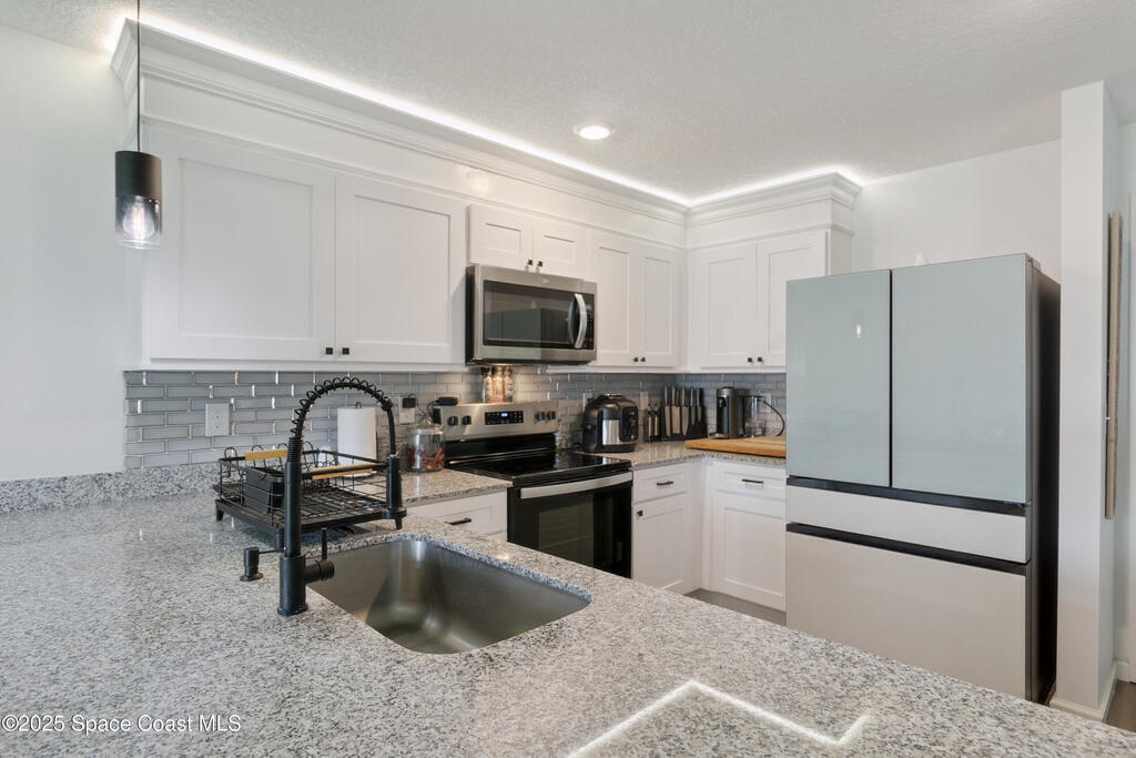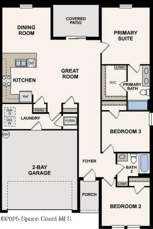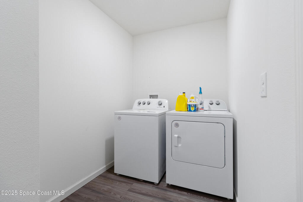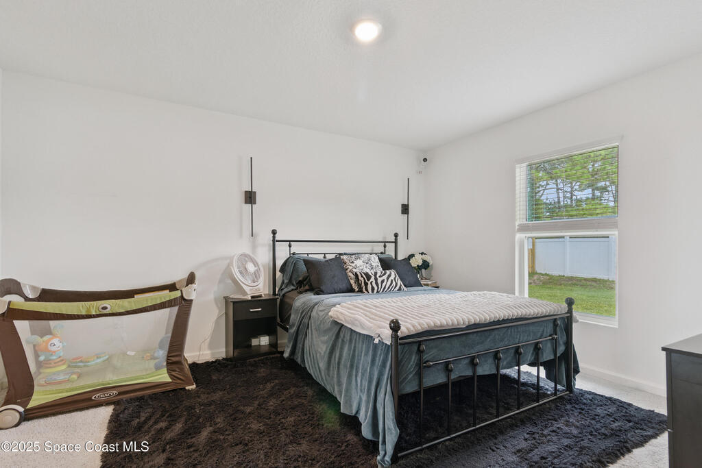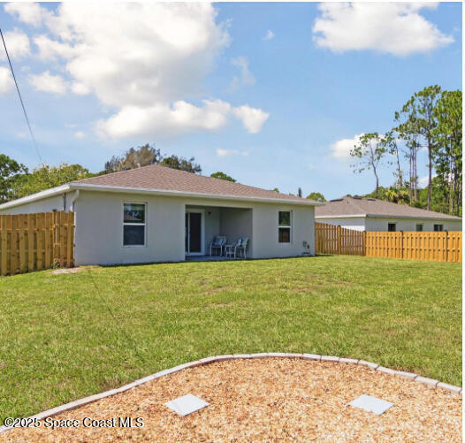 Welcome to a stunning practically new construction home in Palm Bay. No HOA, Water softener with newly installed fence. You don't want to miss this! This single-story residence boasts a modern design, perfect for comfortable living. The Prescott floor plan features an expansive open-concept layout, seamlessly integrating the living, dining, and kitchen areas, ideal for entertainment and daily life. The kitchen stands out with sleek granite countertops, exquisite cabinetry with LED lighting, and stainless steel appliances, including a range with microwave hood, dishwasher and washer & dryer that convey with the home. The private primary suite offers a spacious walk-in closet and a luxurious en-suite bathroom with dual vanity sinks. With three bedrooms and two full bathrooms, this home provides ample space for families, guests, or a home office setup. 10 year structural Warranty available. Don't miss the opportunity to own