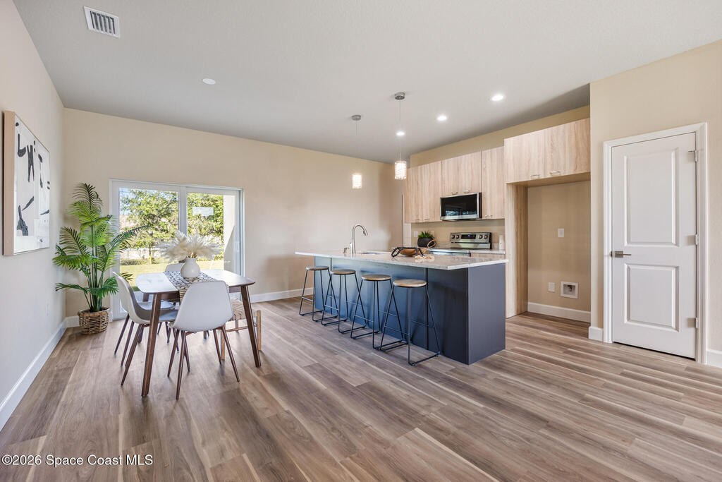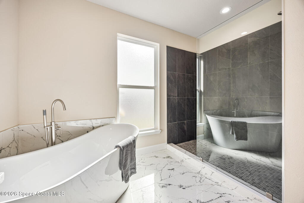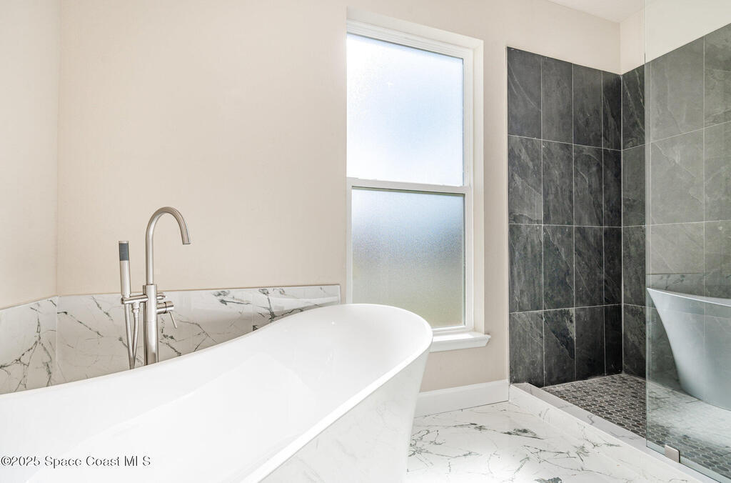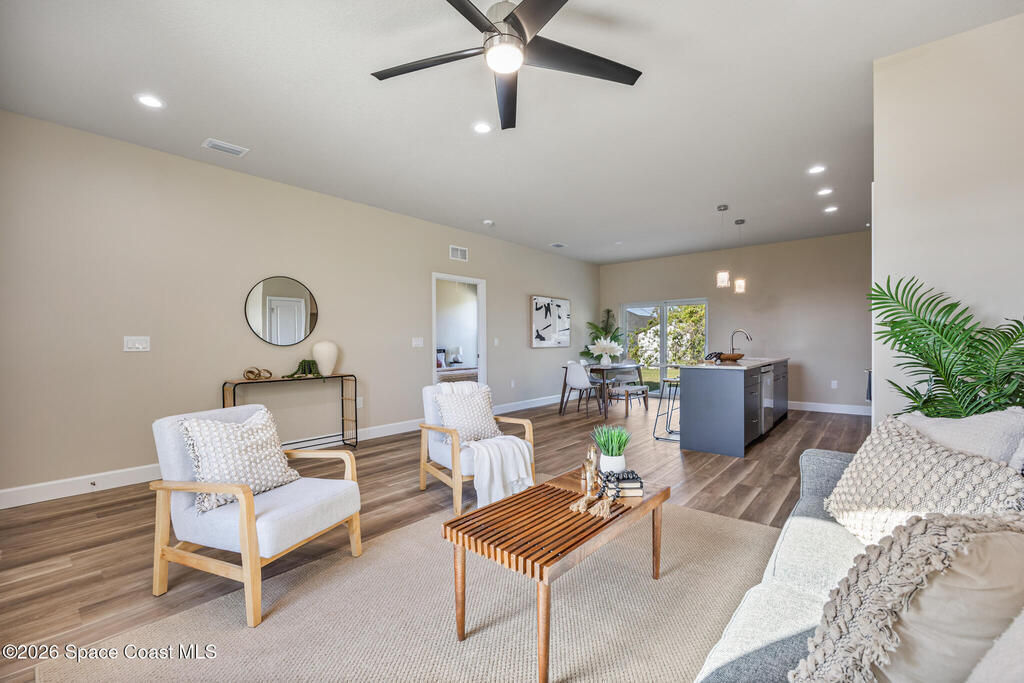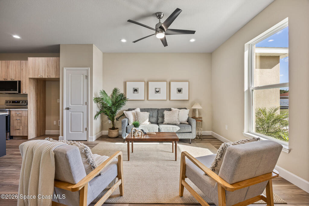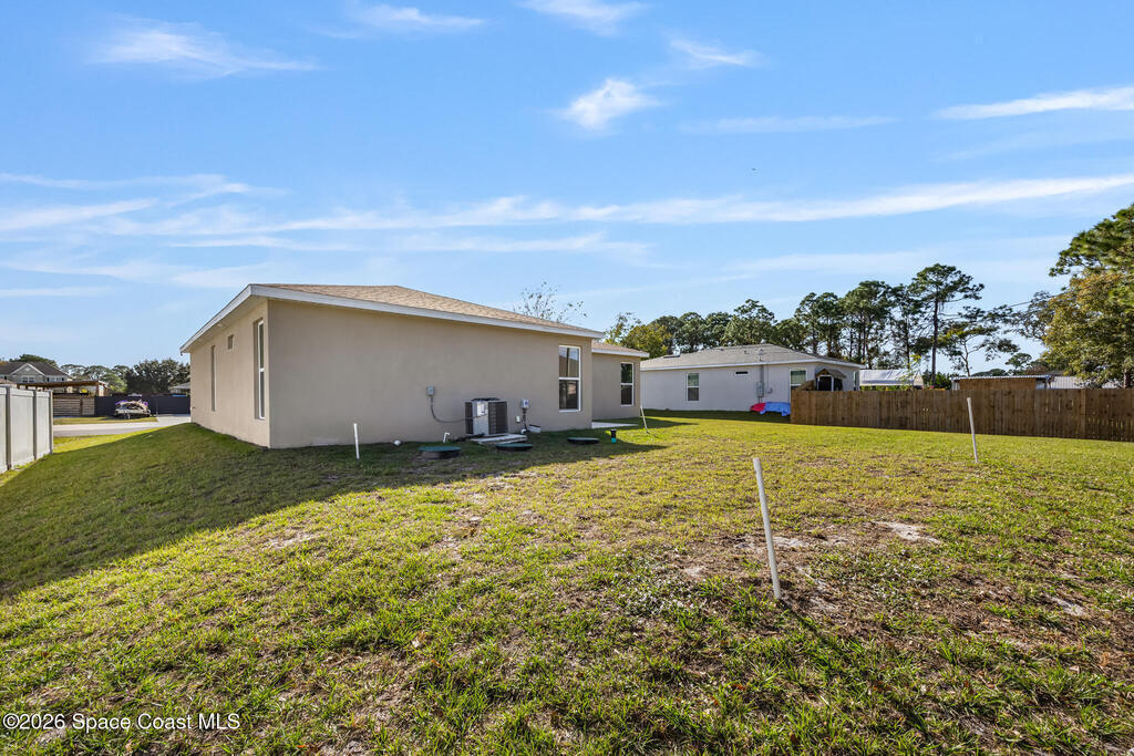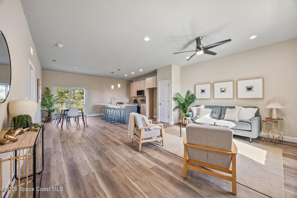 Welcome to this stunning semi custom 4 bedroom 2 full bathroom, NEW construction home. This beautiful concrete block home with warm subtle tones is nestled on .24 of an acre. Spacious open floor plan, expansive 9'4'' high interior ceilings, vinyl plank flooring for easy care and maintenance. Granite countertops, breakfast bar and 42'' upper cabinets for additional storage space and stainless steel appliances make entertaining a breeze. The primary bathroom with granite countertops and dual sinks, over-sized walk-in shower with glass enclosure, free standing soaker tub and elegant designer tile complete this stunning look. Large primary bedroom features His and Her closets. The energy efficient 38'' x 78'' impact windows allow for a light and open feel. Ceiling fans, Indoor laundry room, 2 car garage with insulated garage door and opener and 25 year shingle roof.