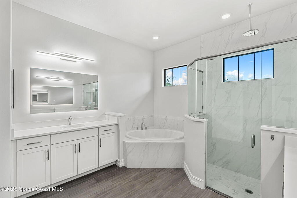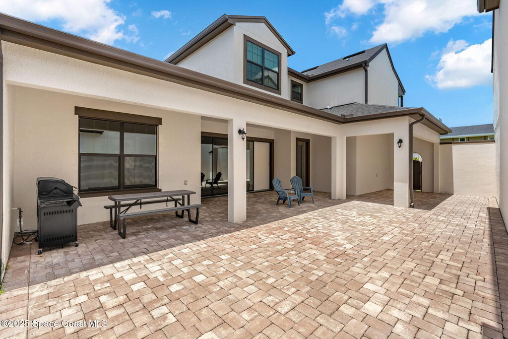 This RARE 2, 600 sq ft courtyard-style home sits on an oversized .13-acre lot, offering one of the largest floor plans and courtyards in the community. Better than new and built for low-maintenance living, it's packed with upgrades including 10-ft ceilings, 8-ft doors, quartz countertops, Italian glass backsplash, stacked-stone fireplace and tile throughout--no carpet anywhere. Every bedroom includes a walk-in closet. The first-floor primary suite features dual closets, double vanities, and a large walk-in shower. Upstairs, you'll find an oversized en suite bedroom plus a flexible bonus room--perfect for a 4th bedroom, office or playroom. Triple 12-ft sliders open to a private 45-ft paver courtyard with gas line for a fire pit--an ideal spot to entertain. Located just a short walk from the Addison Village Club, with access to pools, pickleball, tennis, basketball, parks, and more. Zoned for top-rated schools and close to major roads, shopping, and dining--this home has it all.