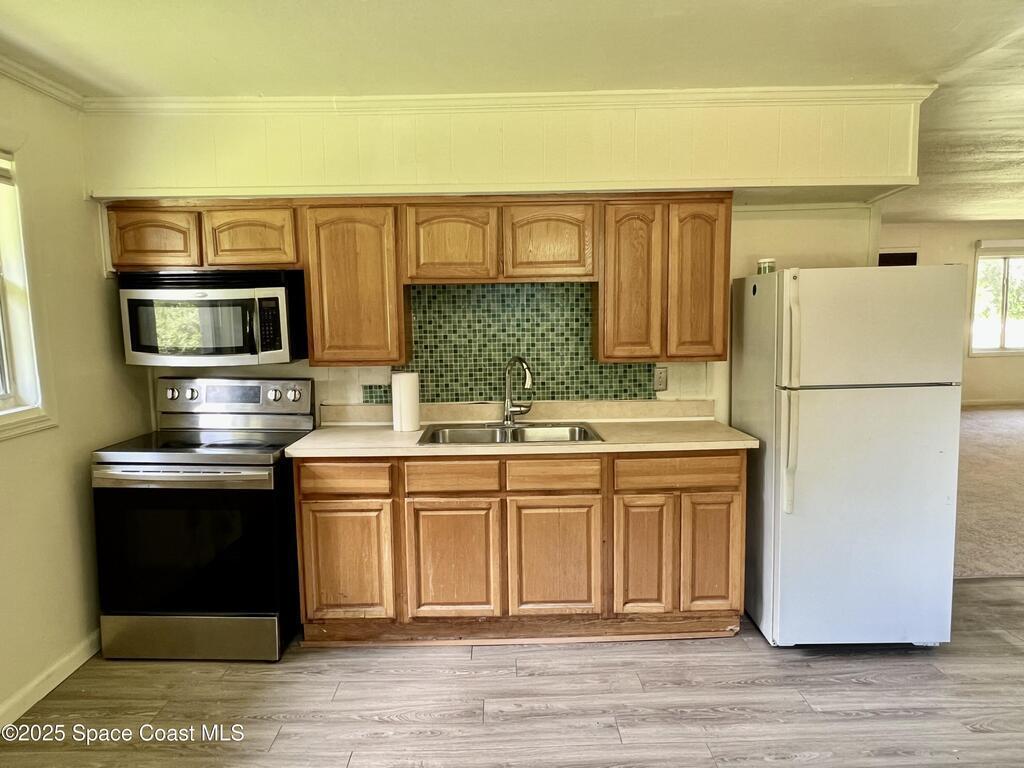 Charming, versatile, and full of potential--this 4-bedroom, 2-bathroom home is ready to welcome its next owner. Step inside to find a freshly updated interior with brand-new flooring and paint throughout. A wide front ramp makes entry easy, and a spacious covered porch out back invites relaxation or entertaining. This home offers true peace and privacy with no neighbors in front or behind, and the oversized lot opens the door to endless possibilities-- add a pool, plant a garden, or design your ideal outdoor space. Whether you're looking for a primary residence or an investment property, this one checks the boxes: no HOA, no CDD, and zero rental restrictions. Short-term or long-term rentals can begin right away. Washer and dryer hookups are in place. Just 12 miles from Cocoa Beach, you'll have quick access to the coast along with local dining, shopping, and conveniences. Schedule your showing today!
