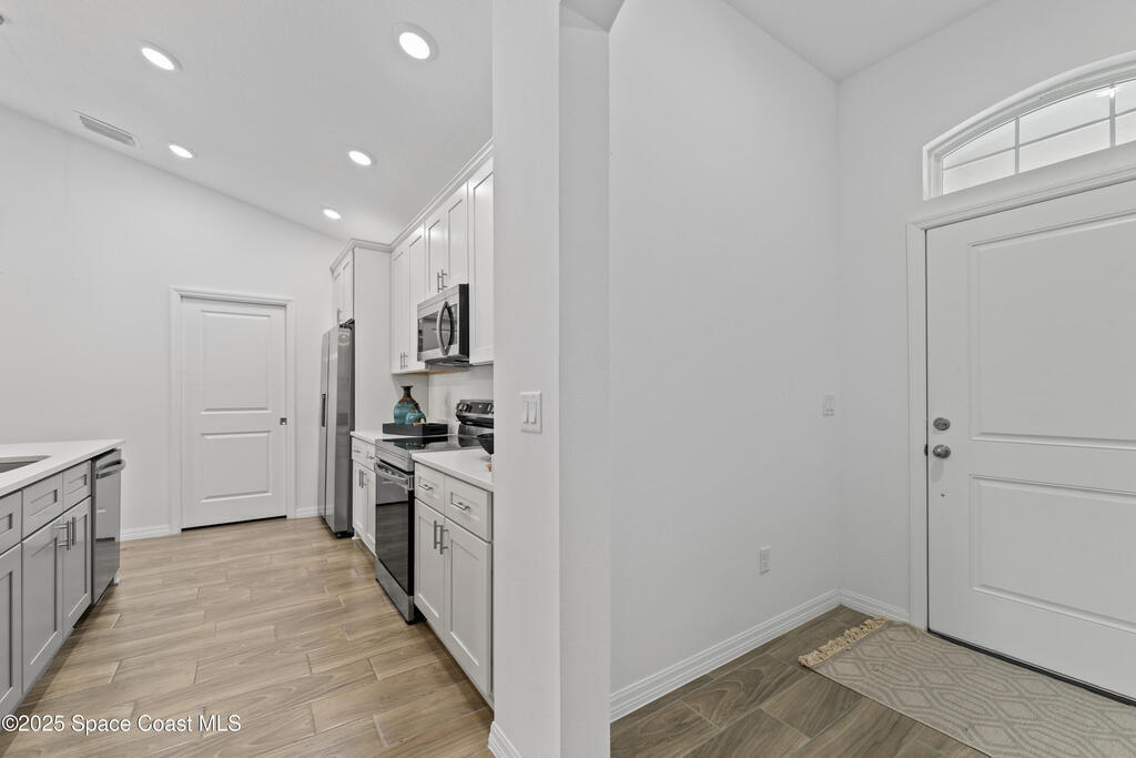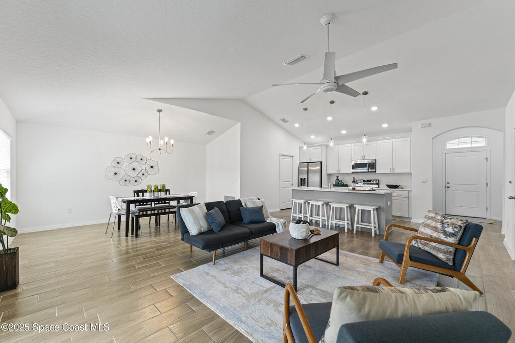 Get ready to fall in love with this stunning 1, 825 sq. ft. home designed for the way you live today. Featuring 4 spacious bedrooms and 2 luxe bathrooms, it blends comfort, style, and function in every detail.The heart of the home? A show-stopping kitchen with 42'' cabinets, Samsung stainless steel appliances, a statement island, and sleek quartz countertops; perfect for cooking, gathering, and making memories.Your private retreat awaits in the master suite, complete with double vanities, designer fixtures, and a custom-tiled walk-in shower. No carpet here--just gorgeous designer tile throughout!Extras you'll love: vaulted ceilings, recessed LED lighting, storm shutters, vinyl-insulated windows, R-30 insulation, a hurricane-rated garage door, and a huge covered lanai pre-wired for outdoor fun.Best of all... NO HOA!