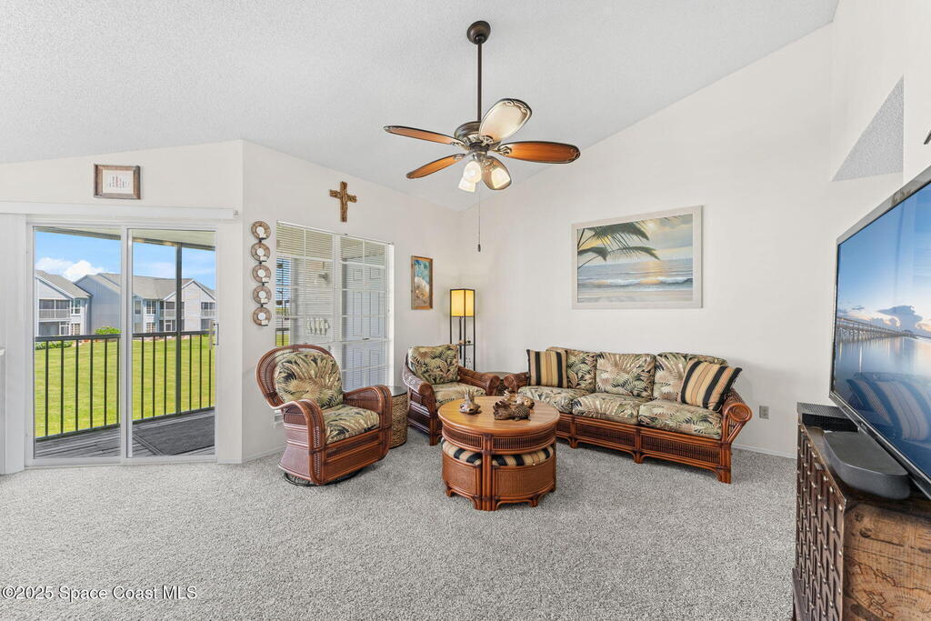 There is no better place to watch the rocket launches! Enjoy unobstructed Indian River views from the kitchen & dining room of this 3-bed, 2-bath condo in sought-after Sunrise Landing, where dolphins & manatees are daily visitors. Just minutes from the beach & with Publix & Walgreens conveniently across the street, this thoughtfully updated unit blends comfort & convenience, featuring LVP in the kitchen & baths (2024), carpet in the living areas (2024) & bedrooms (2015), a fully remodeled kitchen (2020), interior paint & ceiling fans (2015), & updated systems including a 2025 AC/air handler & 2020 washer/dryer. The location offers quick access to Kennedy Space Center & is less than 45 minutes to both Orlando & Sanford airports. Community amenities elevate the waterfront lifestyle with 2 pools, 2 fishing piers, 2 saunas, 2 hot tubs, 2 clubhouses, a spa, BBQ area, tennis & shuffleboard courts, water access, & a vehicle wash zone, all part of a vibrant riverfront setting.