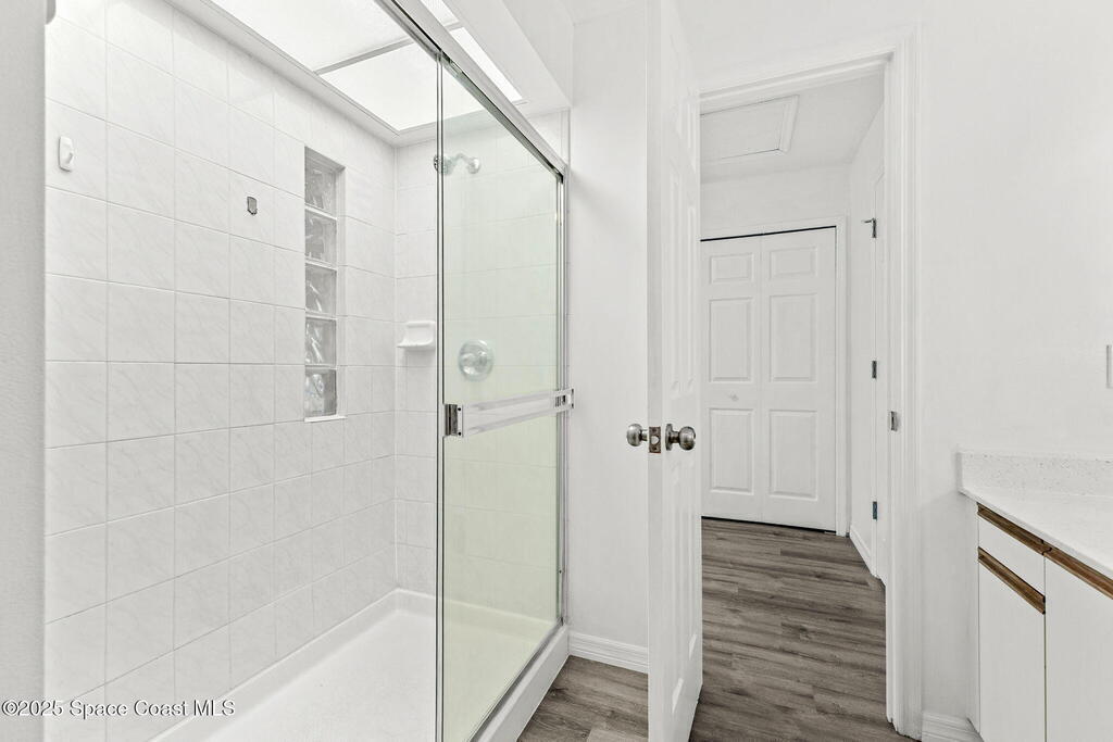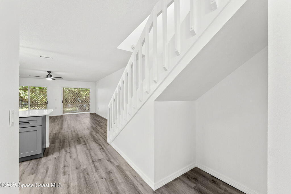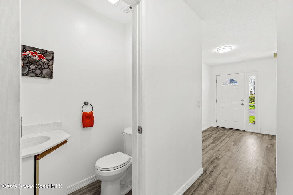 WELCOME HOME to this MOVE-IN ready and beautifully UPDATED 3-bedroom, 2.5-bathroom townhouse located in the heart of Rockledge, This spacious residence features BRAND NEW LVP flooring throughout, FRESH INTERIOR PAINT, updated light fixtures and a FULLY RENOVATED KITCHEN -complete with newer stainless steel appliances, shaker cabinets, and quartz countertops. The bathrooms also got a glow up with resurfaced bathtub, shower, counters and modern LED bathroom mirrors.The open-concept main floor is perfect for entertaining, while all bedrooms are privately tucked away upstairs for added comfort. The spacious primary suite includes two large closets, en-suite bath and private balcony. Two additional bedrooms-one with a private balcony share a full bath and offer plenty of space for family, guests, or a home office.The extra long garage has enough room for your car and all your toys-additional guest parking too! Community POOL!