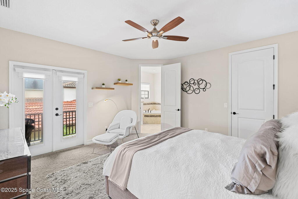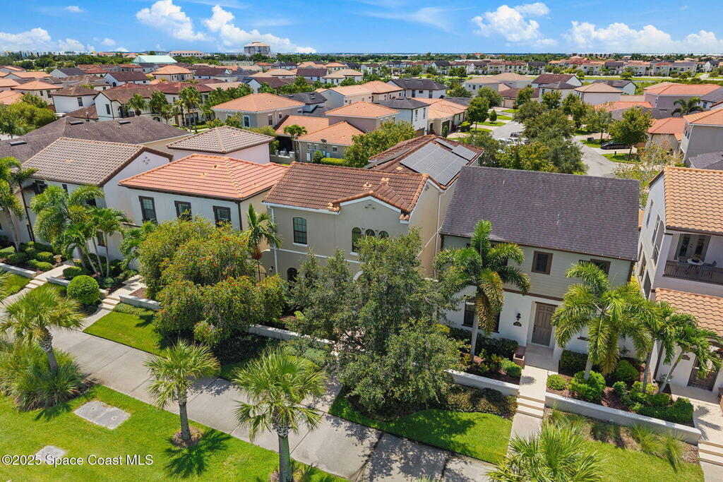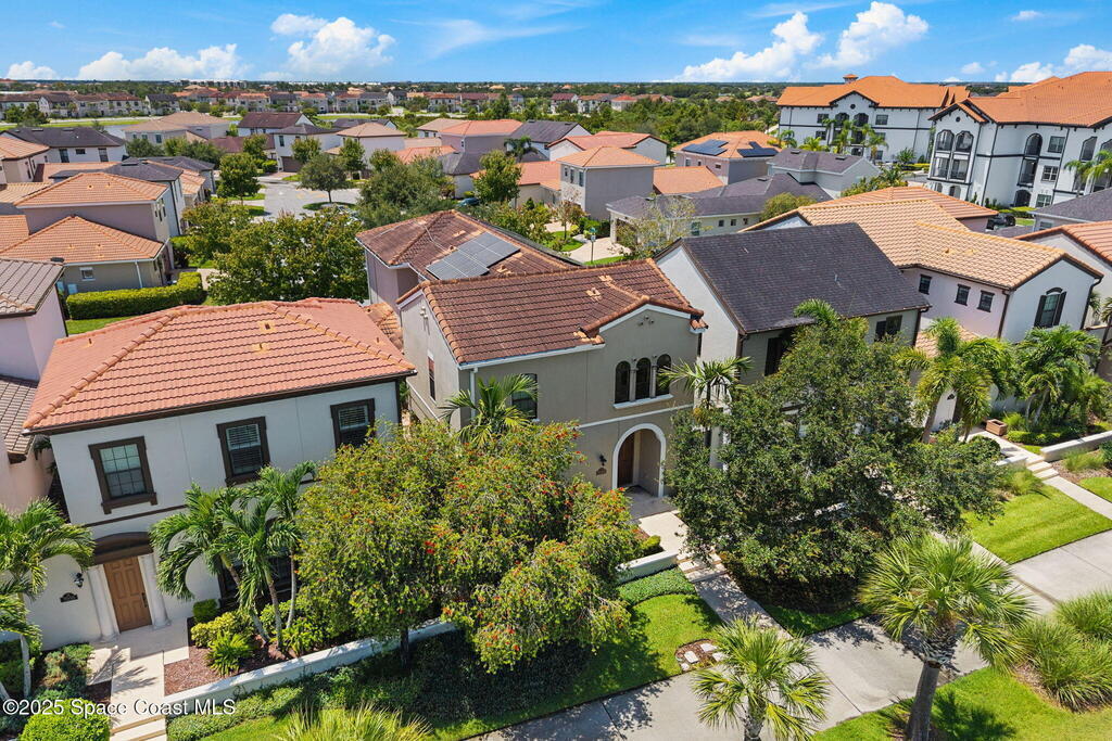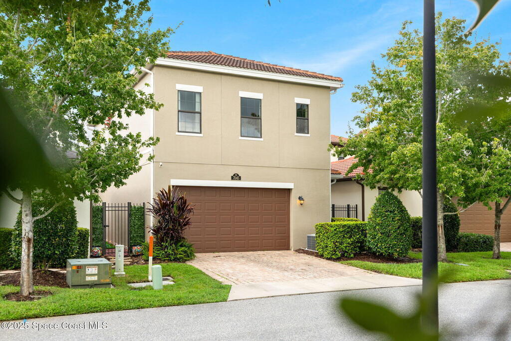 Walkability is unmatched with this beautiful Merida floor plan in the sought after community of Arrivas Village! Inspired by the classic spanish colonial architecture of St. Augustine, this home seamlessly blends classic design with modern function. Sustainability is a key feature of this home, with solar panels on the roof to reduce energy costs. This 4 bedroom home with bonus room and 4.5 bathrooms features an open concept layout with a spacious kitchen, oversized island and large great room filled with natural light from french doors and windows, all leading to a private, beautifully designed courtyard perfect for outdoor living. One bedroom downstairs features a full bath with walk in shower, perfect for guests, in-laws or home office. Upstairs, two bedrooms share a jack and jill bath, while the primary suite boasts his and hers walk in closets, private balcony and a spa like bath with dual vanities, soaking tub, and walk in shower. A spacious bonus room over the garage includes