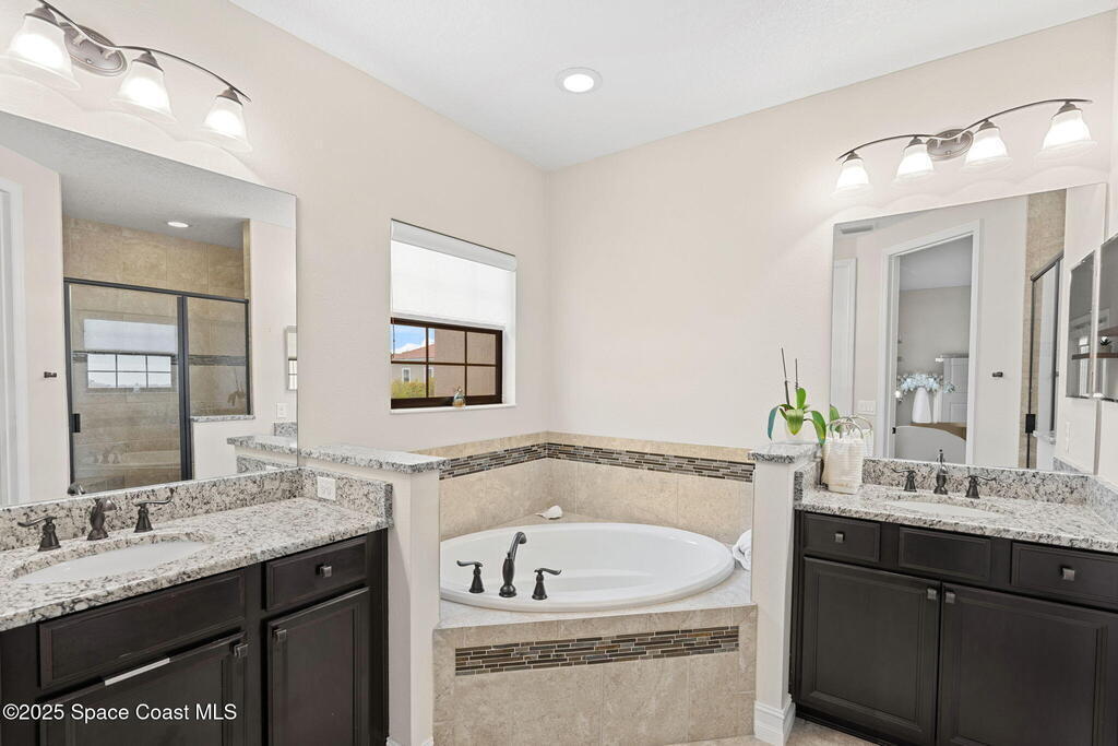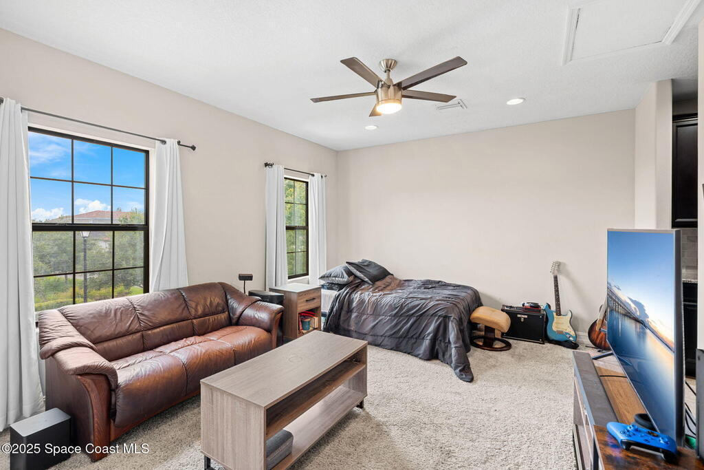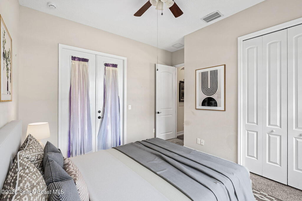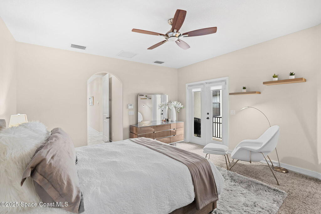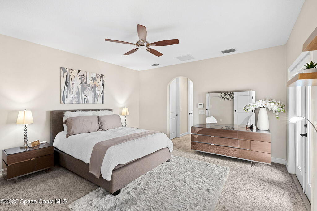 Walkability is unmatched with this beautiful Merida floor plan in the sought after community of Arrivas Village! Inspired by the classic spanish colonial architecture of St. Augustine, this home seamlessly blends classic design with modern function. Sustainability is a key feature of this home, with solar panels on the roof to reduce energy costs. This 4 bedroom home with bonus room and 4.5 bathrooms features an open concept layout with a spacious kitchen, oversized island and large great room filled with natural light from french doors and windows, all leading to a private, beautifully designed courtyard perfect for outdoor living. One bedroom downstairs features a full bath with walk in shower, perfect for guests, in-laws or home office. Upstairs, two bedrooms share a jack and jill bath, while the primary suite boasts his and hers walk in closets, private balcony and a spa like bath with dual vanities, soaking tub, and walk in shower. A spacious bonus room over the garage includes