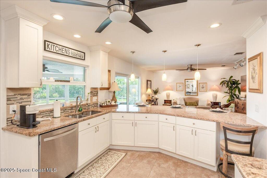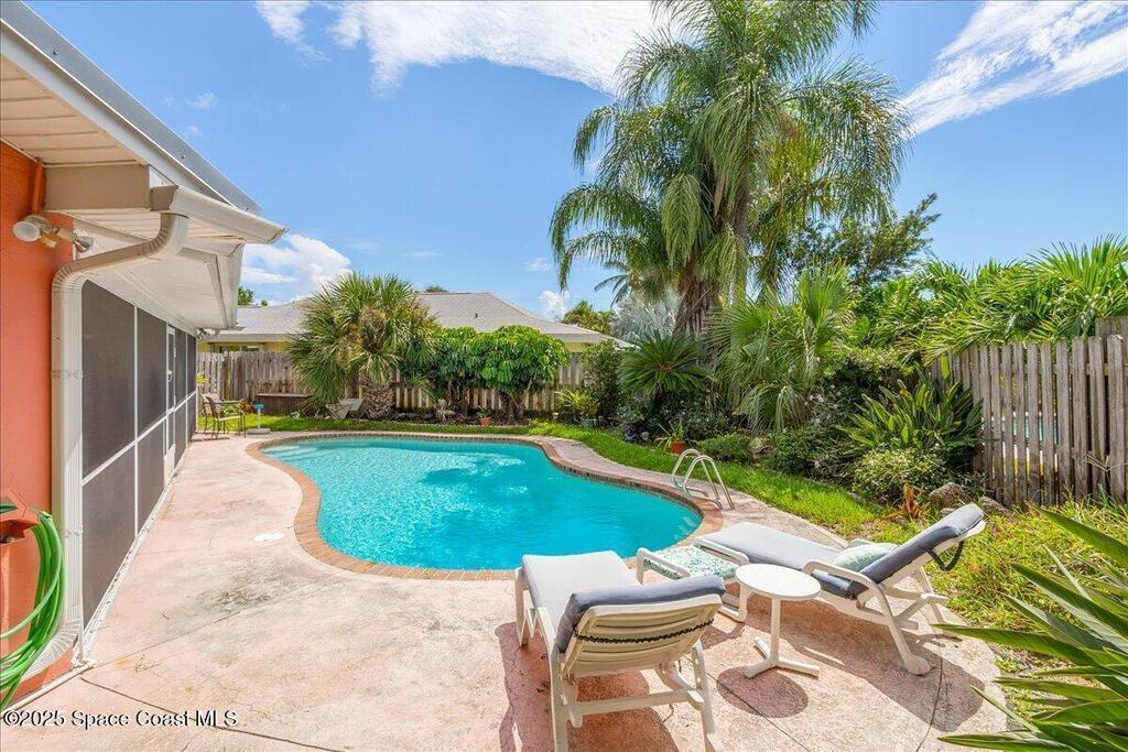 This beautiful beachside pool home offers 4 spacious bedrooms, 2.5 bathrooms, and a 2-car garage, perfectly blending comfort and style. The upgraded kitchen features stainless steel appliances, abundant cabinets, generous counter space, a breakfast bar, and a convenient pass-through window to the screened back porch--ideal for entertaining. Just off the kitchen, the family room provides a cozy gathering space, while the open living and dining combo creates a versatile layout. The primary suite boasts a large walk-in closet and an updated bathroom, offering a private retreat. With a laundry room for added convenience and a backyard designed for relaxation and fun, this home combines functionality with the best of Florida beachside living.