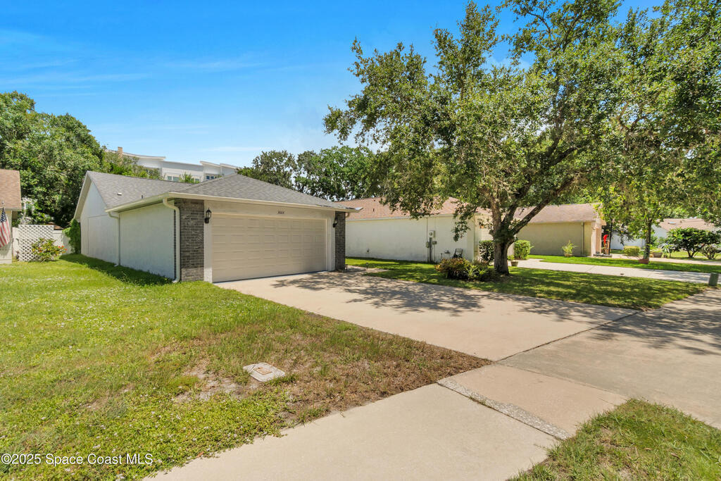 Welcome to this beautifully maintained 3- bedroom 2- bath home nestled in a highly desirable, walkable community known for its charm and convenience. Enjoy peaceful strolls along tree-lined sidewalks or take advantage of the inviting community pool just steps from your door. Inside, you'll love the no-carpet interior, offering clean lines and easy upkeep, along with an updated primary bath that adds a touch of luxury. The 2-car garage provides ample storage, and best of all--you're only 15 minutes from the beaches! This home combines comfort, style, and location in one perfect package.Roof 2019, HVAC 2020, Garage Door 2019 hurricane rated, gutters 2019.