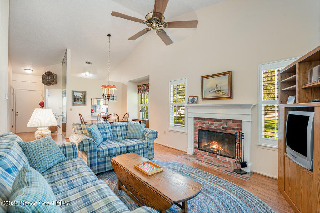 WHY Rent? Own this Villa that is priced to sell! A 1 story home with vaulted ceilings and a cozy wood-burning fireplace creates the perfect retreat. Large primary bedroom has it own bathroom and lots of closet space. The enclosed lanai with energy efficient windows adds additional living space perfect for relaxing. Enjoy the convenience of an Attached Garage with in your own driveway and plenty of extra parking. Large kitchen with plenty of cabinets. Under air storage in the attic. No steps. HVAC replaced in 2023. HOA fees include cable, internet, water and pest control as well as grounds and structure maintenance. Lake in the Woods also offers an optional membership which includes access to the community pool, clubhouse, tennis courts and gym. This ideal location is just over a mile to FIT making it an ideal investment. Minutes to shopping, dining, downtown Melbourne, and beautiful beaches. Design board available for renovations.