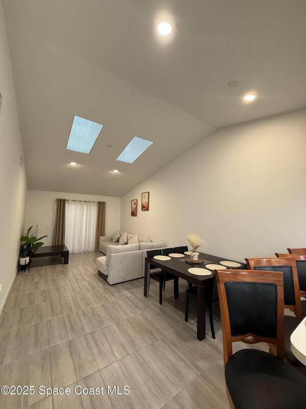This home is located in a quiet community with a Pool, tennis courts, clubhouse and open land parcels that host many trees and create a utopian feel! Enclosed front entry with keypad, motion sensor LED lights and Ring Surveillance system ensures peace and security. 2-car garage equipped with washer/dryer, utility sink, and shelving is perfect for owners who fancy leisure and recreation.The functional kitchen with breakfast bar, farmhouse sink, conveys newer stainless steel appliances! Hallway opens into the main living area with skylit vaulted ceilings that bring the perfect amount of natural light into this 3 bed 2 bath floorplan that feels bigger than it measures.To top it all off there is an enclosed Florida room leading out from the rear slider door which has it own secure entry/exit. All under a 2023 Roof! This property is easy to show, FULLY FURNISHED and move-in READY! Low monthly HOA!