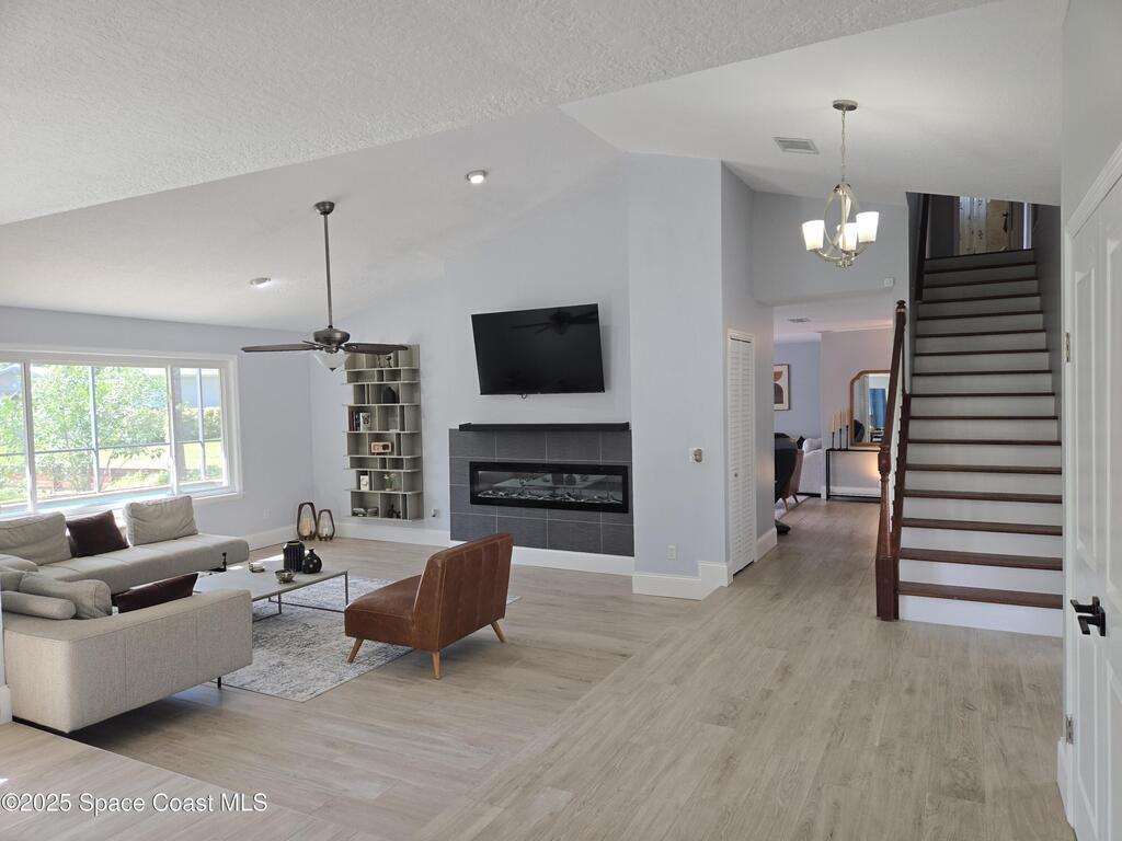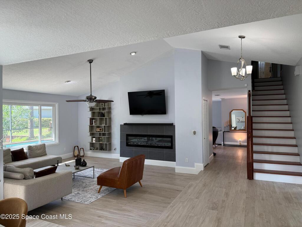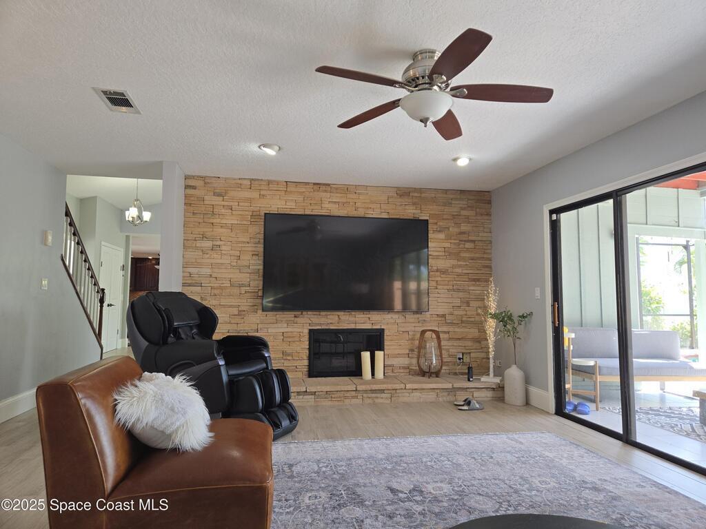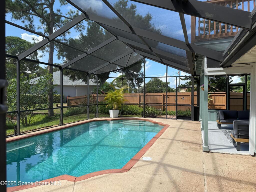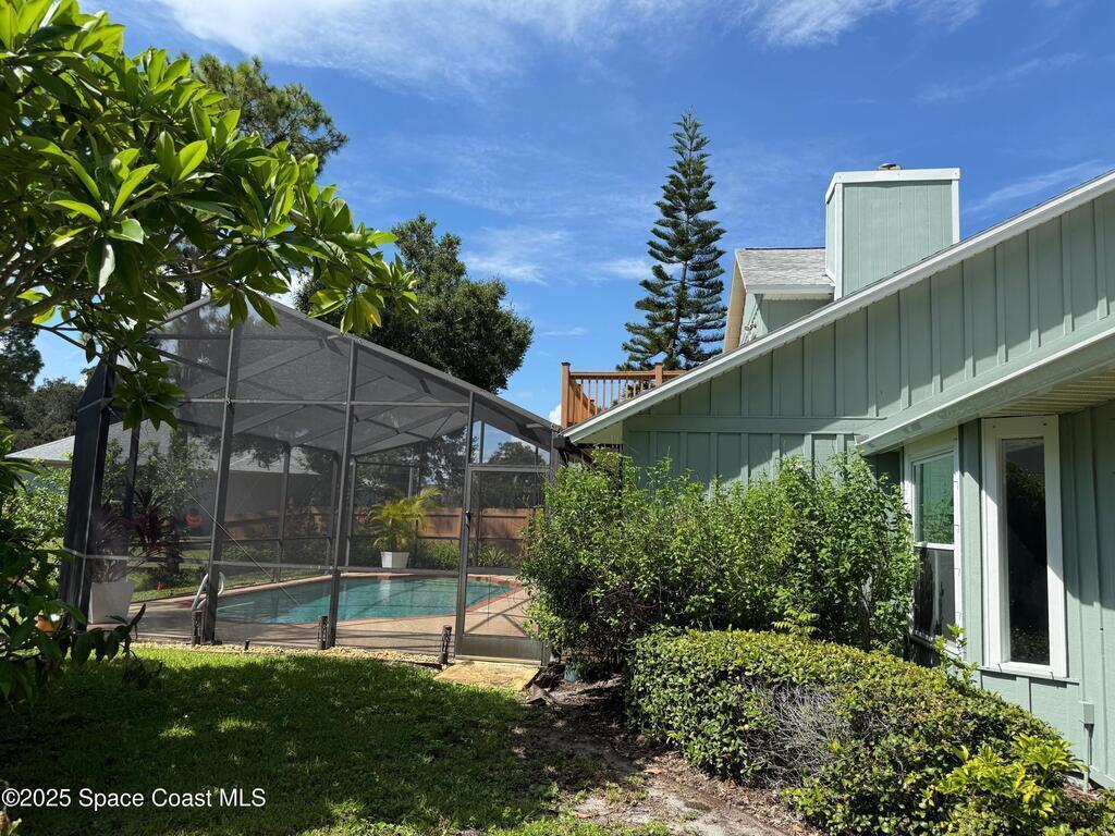Peaceful Merritt Island Gem - 4BR plus office space and 3 Bathroom on Large Corner Lot with Salt Water Pool & Lake ViewThis spacious home offers 4 bedrooms, 3 baths, and a large second-floor balcony perfect for morning coffee or sunset views. Set on an expansive corner lot shaded by beautiful mature trees, it provides a rare blend of privacy and charm. Enjoy serene lake views and a sparkling private pool for relaxing or entertaining. Inside, multiple living areas offer comfort and flexibility for any lifestyle. Upgraded kitchen & bathrooms. Stunning fireplace and wall work .House offers a Workshop with AC as well as RV Parking .This is truly a piece of paradise!!! Located just minutes from beaches, shopping, dining, and Kennedy Space Center, this home is a true retreat in the heart of the Space Coast.