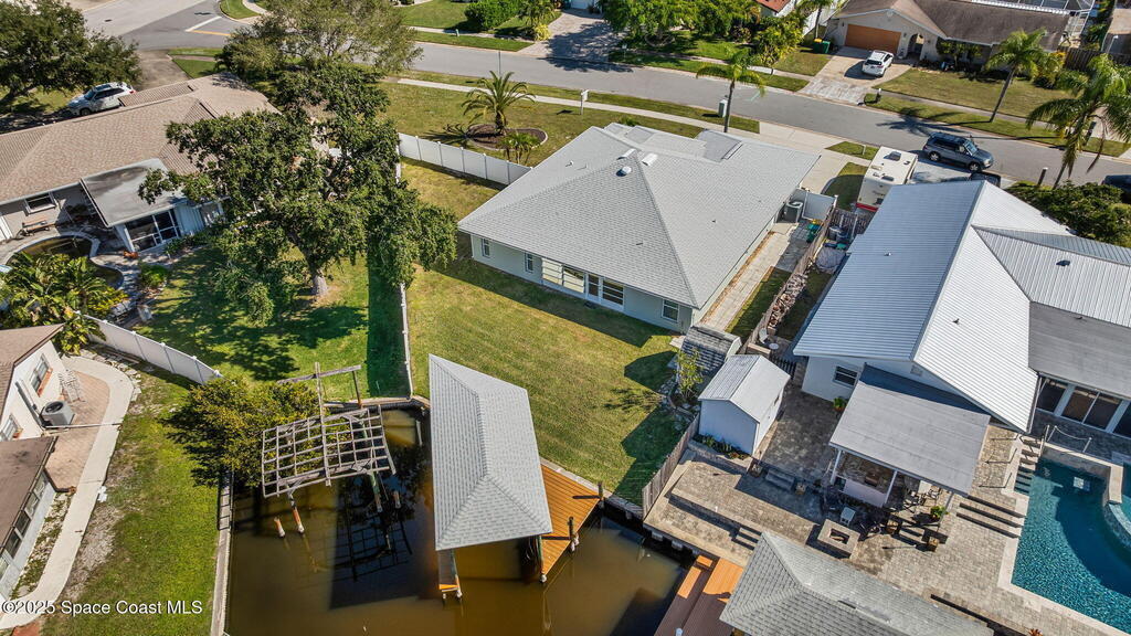 Experience the best of Merritt Island living in the meticulously maintained canal-front home located in beautiful Diana Shores featuring a private boat house, power lift and newly rebuilt dock, perfect for boating enthusiasts. Unlike many neighboring waterfront homes, it comes with the peace of mind that a newer build would featuring a solid concrete block construction, ZERO cast iron plumbing or aluminum wiring making much LOWER maintenance and INSURANCE cost of an older home. The spacious master suite boasts an en-suite bath with walk-in shower and Jacuzzi tub. Two additional bedrooms and a second full bath provide ample space for family or guests. Situated on Sykes Creek, your backyard is a getaway to Florida's finest waterways. Enjoy the seamless navigation to the Indian and Banana River, Barge Canal and the Atlantic Ocean. Relax with your favorite beverage in the Florida Room watching Dolphin and Manatee play or step out in the front yard a watch a breathtaking rocket launch.