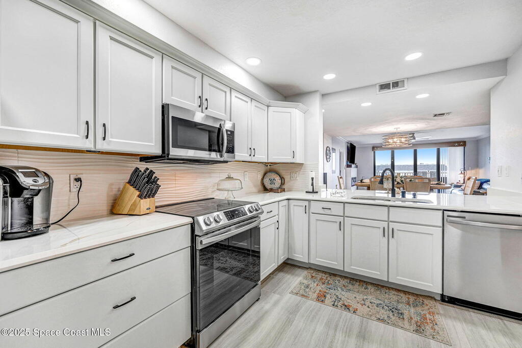 Welcome to 750 N Atlantic Ave, Apt 808 -- a spacious 2-bedroom, 2-bath +Home Office in the highly sought-after oceanfront Xanadu Condominium. This 1, 993 sq ft home has been completely upgraded since April 2024 with new flooring & 5'' baseboards, an added fully functioning home office, impact windows with roller shades, all new Samsung smart stainless appliances (including 2nd refrigerator, wine cooler & wall oven), custom closets, refurbished cabinetry, and a stunning master bath with a walk-in shower. From your private balcony, enjoy the rare combination of beach, pool, and river views -- perfect for sunrises and sunsets. The layout maximizes natural light and cross-breezes, while modern lighting, a custom electric fireplace, & new interior doors add style throughout.Xanadu offers resort-style amenities: oceanfront pool & spa, fitness center, tennis/pickleball, secure lobby, and private garage & storage. Only a short stroll to the sand, moments to dining & entertainment.