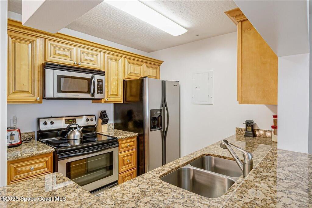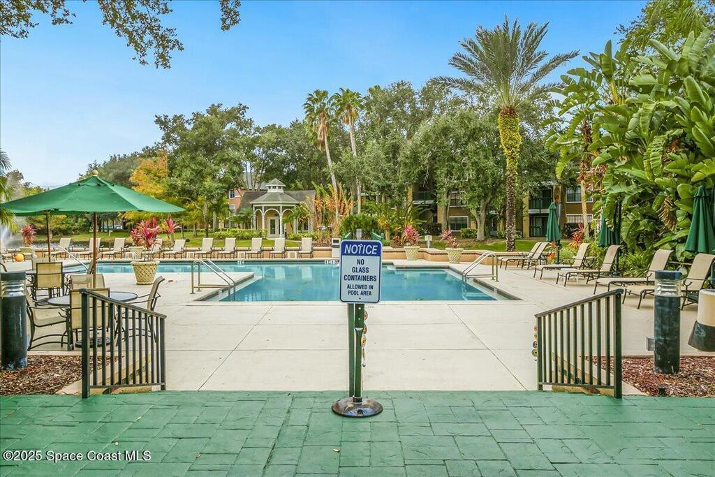 Move-in ready and tastefully furnished 1BR/1BA first-floor condo in Cypress Cove at Suntree. Features tile floors throughout, an updated kitchen and bathroom, stainless steel appliances, new AC with transferable warranty, and new impact‑rated windows. The new impact rated sliding glass door opens to a screened patio. HOA includes pool access, fitness center, clubhouse and landscaping -- a great low-maintenance option for buyers or investors.