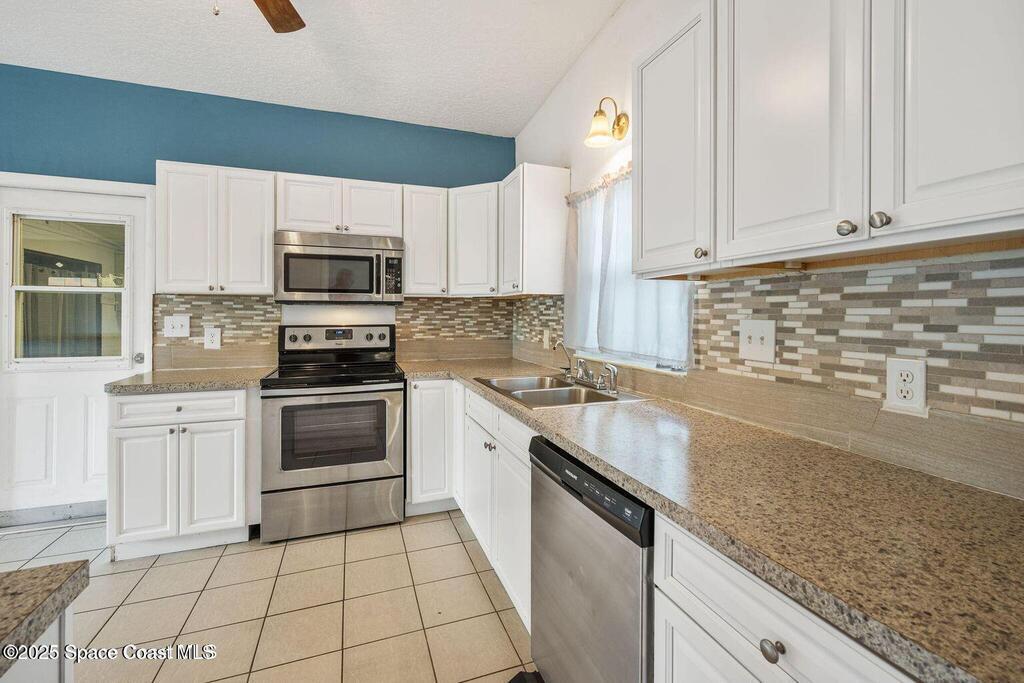 Charming renovated home in established neighborhood. All C.B.S block home with new Roof just completed and a 2-car garage. Home has horizontal slider windows, front entry, and patio doors. Newer kitchen cabinets and countertops. Excellent stainless steel appliances, quality newer A/C Roomy breakfast bar, and both bathrooms have been partially updated. Has all colonial doors throughout the home. 3-sides fenced big backyard has an extra large storage shed . only 30 min. to the beaches or Orlando and 20Min. to the Space Center.