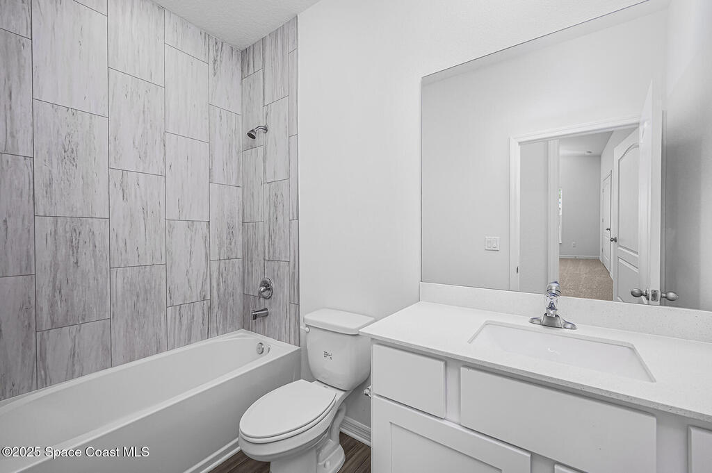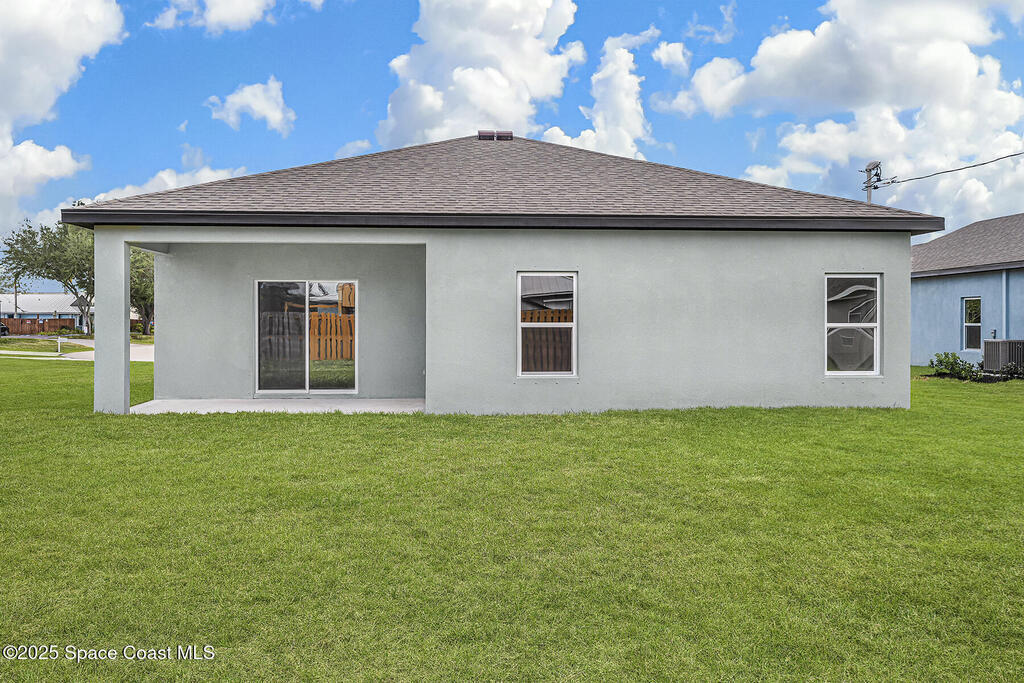 Ask us about our incentives, builder paid closing costs, & no down payment options! The Escambia floor plan serves as a spacious home for families and guests. Featuring an open concept floor plan, the home boasts 4 spacious bedrooms, 2 full bathrooms and is complete with over $10, 000 in upgrades. These include energy-efficient Whirlpool(r) appliances, spacious granite countertops in the kitchen, stunning wood cabinets, brushed nickel hardware and an attached two-car garage. In addition, the Estero's secluded master retreat highlights a large walk-in closet. Best of all, this Palm Bay home offers residents a premier location with convenient access to nearby shopping, golf courses, world-class area beaches and amenity-packed parks. **appliance models are subject to availability**