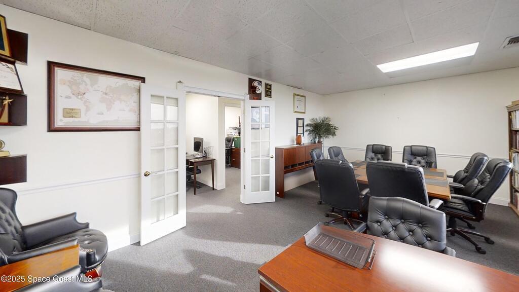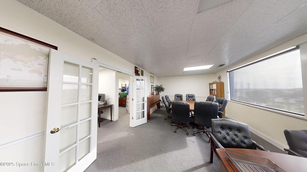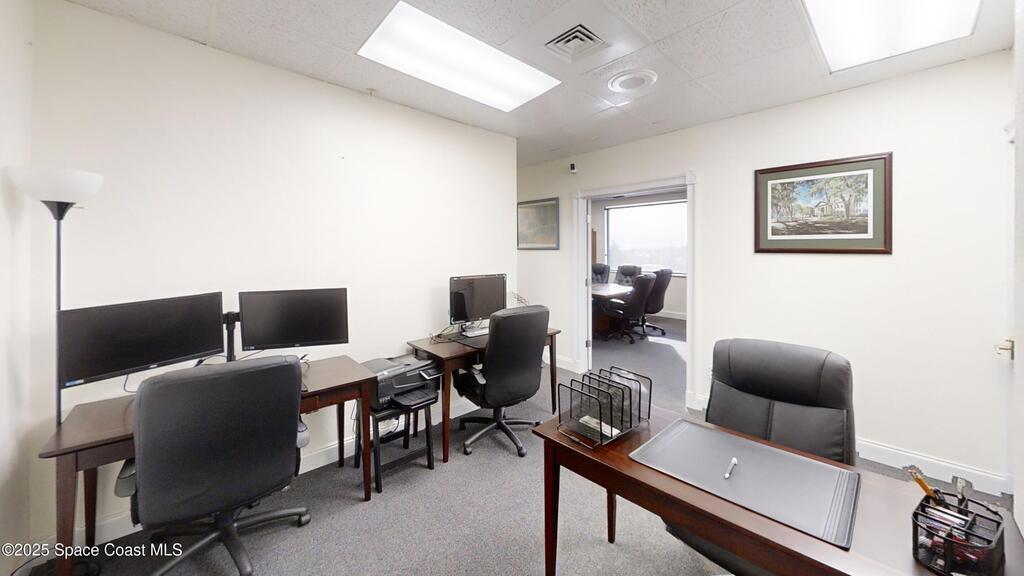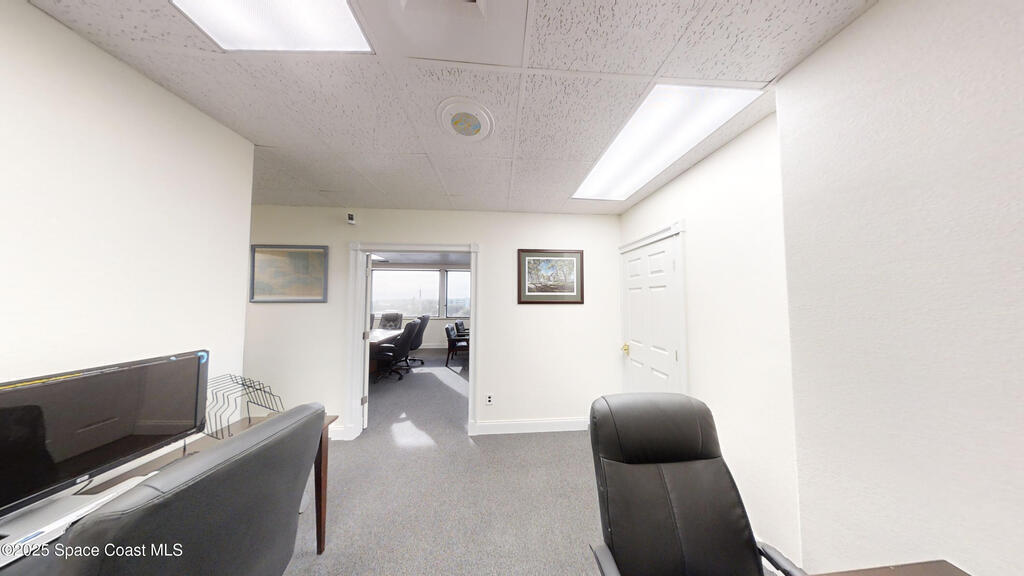 Centrally located Cocoa Beach commercial office on the 4th floor of the Cape Royal Building with a West facing picturesque view of the Banana River. The office is configured with a reception/bull pen area, private office, server closet and a large office/conference room for 594 contiguous square feet. (Units 426-428) The building has 24-hour access with automatic front doors and secure after-hours locking doors. There is plenty of parking in front and rear of the building. 3 elevators for quick access. Brand new impact windows and exterior paint for a fresh look. Digital and Pylon signage available from the Association. The building has fire protection in the form of sprinklers. FedEx and UPS has onsite lobby pickup. Rent includes electricity. Public restrooms on floors 2-10. Association fee paid by Owner. Diverse tenant mix and most commercially zoned businesses allowed. Owner is a Licensed Real Estate Broker.