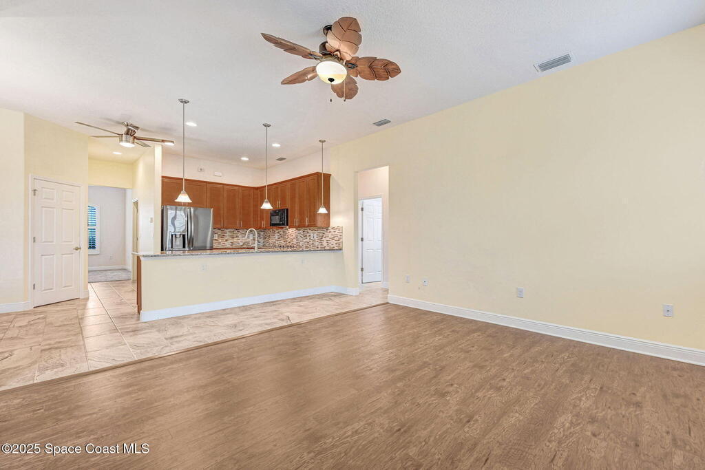 HUGE PRICE IMPROVEMENT!!Located in a quiet GATED neighborhood with a low HOA, this 4BD/2BA home backs to a protected wildlife preserve for lasting privacy.Inside, enjoy a wrap-around kitchen with a breakfast nook, 2 large pantries, and a new refrigerator. The private master suite includes an en-suite bath, while 3 additional bedrooms provide flexibility for family, guests, or an office. A separate living and dining room offers defined spaces, complemented by high-end plantation shutters throughout and a NEW HVAC. Accordion hurricane shutters plus exterior front shutters provide peace of mind. Outdoor living is easy with an oversized screened lanai, perfect for relaxing or entertaining, with plenty of space to add a pool. Conveniently located near shopping, dining, and entertainment with quick access to Wickham Rd. and US-1.