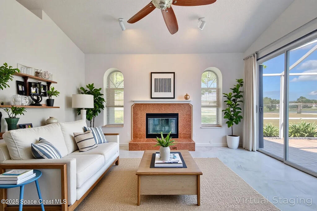 This stunning 3-bedroom, 2-bath home sits on the 6th tee of The Savannahs--Merritt Island's only golf community. With a top-tier course, clubhouse amenities, and sprawling nature preserves, this neighborhood is the definition of the Florida lifestyle.''Spacious'' says it all. Soaring ceilings and an open floor plan fill the home with natural light. The remodeled kitchen flows into a cozy family room with a fireplace, and the oversized screened porch is perfect for morning coffee, entertaining, or unwinding after a round of golf.Upgrades include wood floors, wood-look tile, and fresh paint throughout--making this home move-in ready with style.Location seals the deal: minutes from Port Canaveral, Brevard's beaches, Kennedy Space Center, Orlando International Airport, and just a mile from Kars Riverfront Park, complete with boat ramp and front-row rocket launch views.