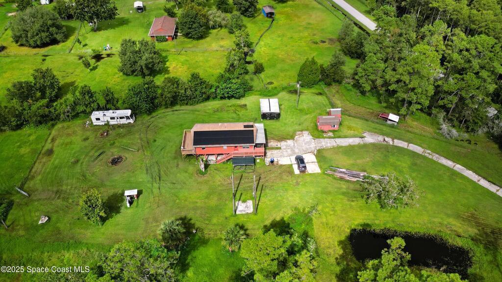 Looking for some serious space?! You found it here! Almost 5 acres of prime real estate. Owner enhancements/costs:Well filter system with chlorine and salt softener ($4, 000).Wire and posts with gates to 3 pastures with water ($3, 500).Spray expanding foam in attic ($5, 500)Pole barn for tractor ($1, 500)30 by 70 - 6 ft deep pond ($3, 500)Pressure treated back deck 15 by 30 ft ($8, 000)Half bath added ($6, 000)2 stall bath house with heated shower ($10, 000)Solar powered electric main gate opener ($3, 000)Solar panels on roof ($30, 000)20 ft connex storage unit ($5, 000)New well pump motor ($3, 500)RV power and water hook up ($6, 500)Hurricane windows and doors installed north and south facing ($6, 000)