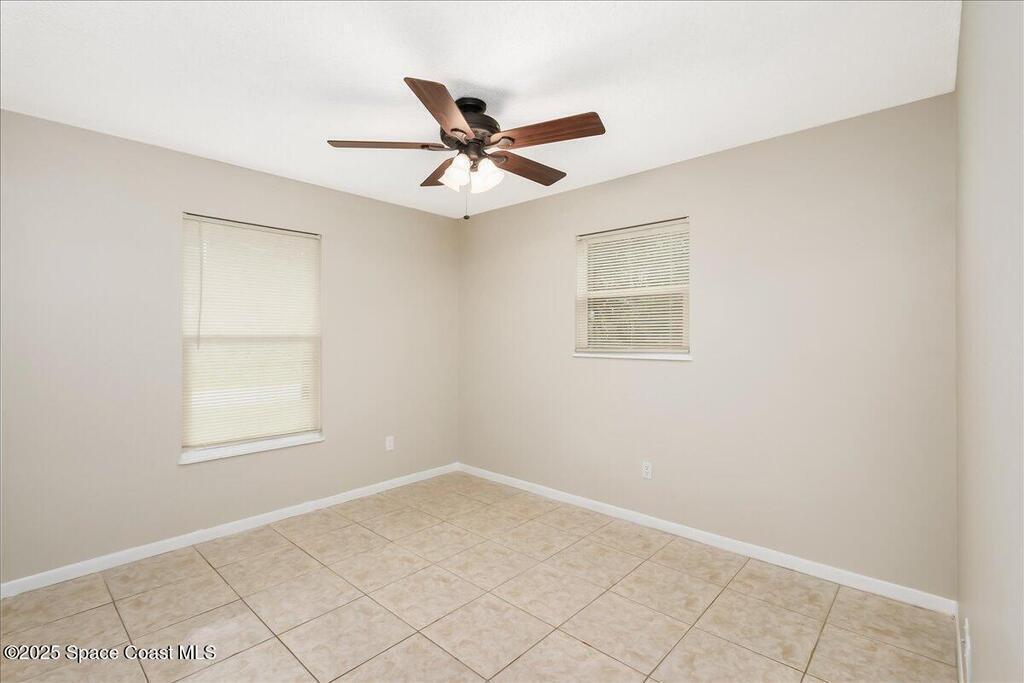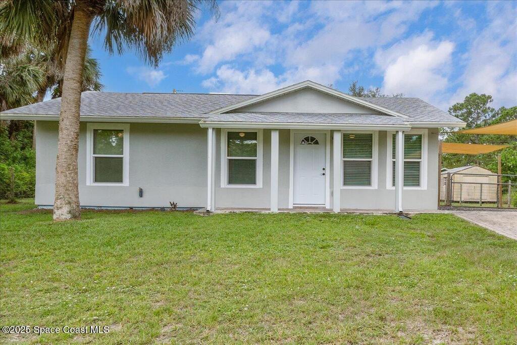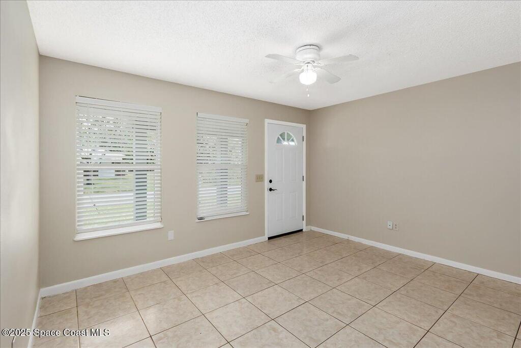 Great opportunity for first-time buyers! This well-kept 3b/1b home in Palm Bay offers comfortable living in a quiet neighborhood. The front living room flows into an eat-in kitchen w/laundry area, creating a practical layout for everyday life. All three bedrooms & the full bath are set down the hall ensuring privacy from the hubbub of everyday life. Tile floors & ceiling fans throughout add comfort & ease, and a backyard shed provides extra storage. Easy to maintain & move-in ready, this home could also work well as a rental or seasonal retreat. Impact windows and new roof 2023. Don't miss your chance - schedule your showing today!