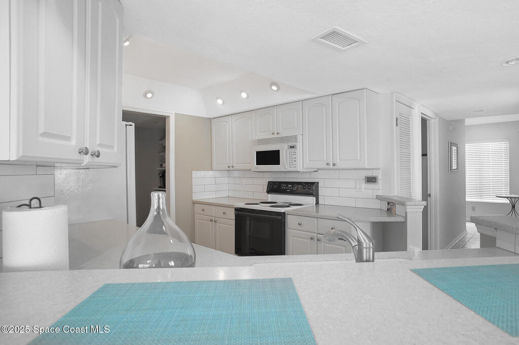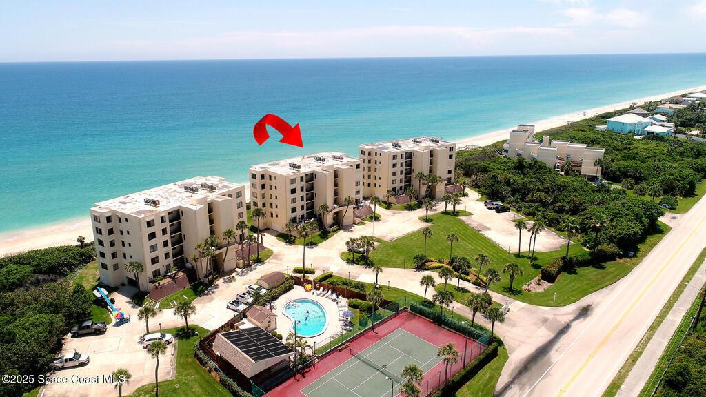 Find your paradise here at Sterling House! Wake up to incredible sunrises every day from this fourth floor direct oceanfront, END unit that has spectacular views of the ocean and pristine sandy beach! This condo is being sold furnished and has split floorplan, impact glass and new hot water heater. The buildings have been completely renovated. Relax watching the beautiful sunsets over the river. Panoramic views of the ocean blue from your kitchen, living/dining room, spacious balcony and primary bedroom. Kitchen has ample counter top space and breakfast bar for stools. Laundry room off kitchen has big pantry with wood shelves. Plantation shutters. Primary suite has huge walk in closet and slider to balcony. Guest bath shower just remodeled. One car garage space under building plus storage area for beach toys. Enjoy the community tennis court, heated swimming pool with restrooms, covered pavilion for grilling and parties plus car wash area.
