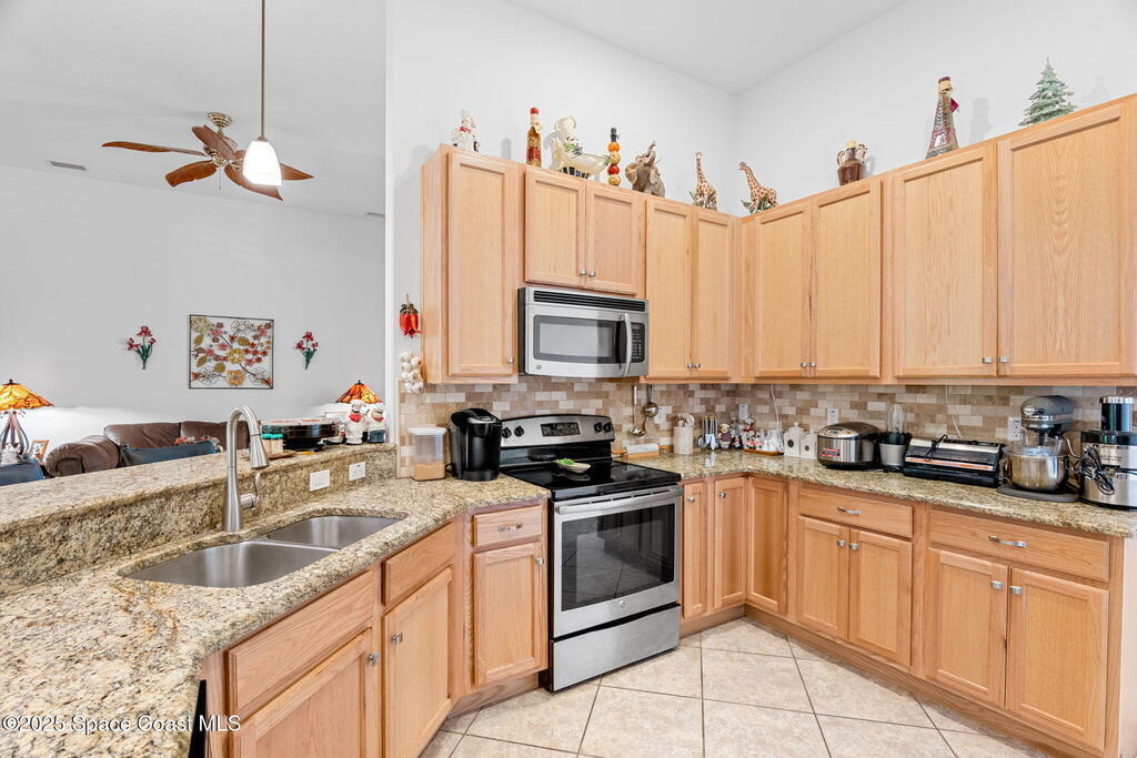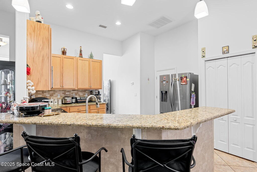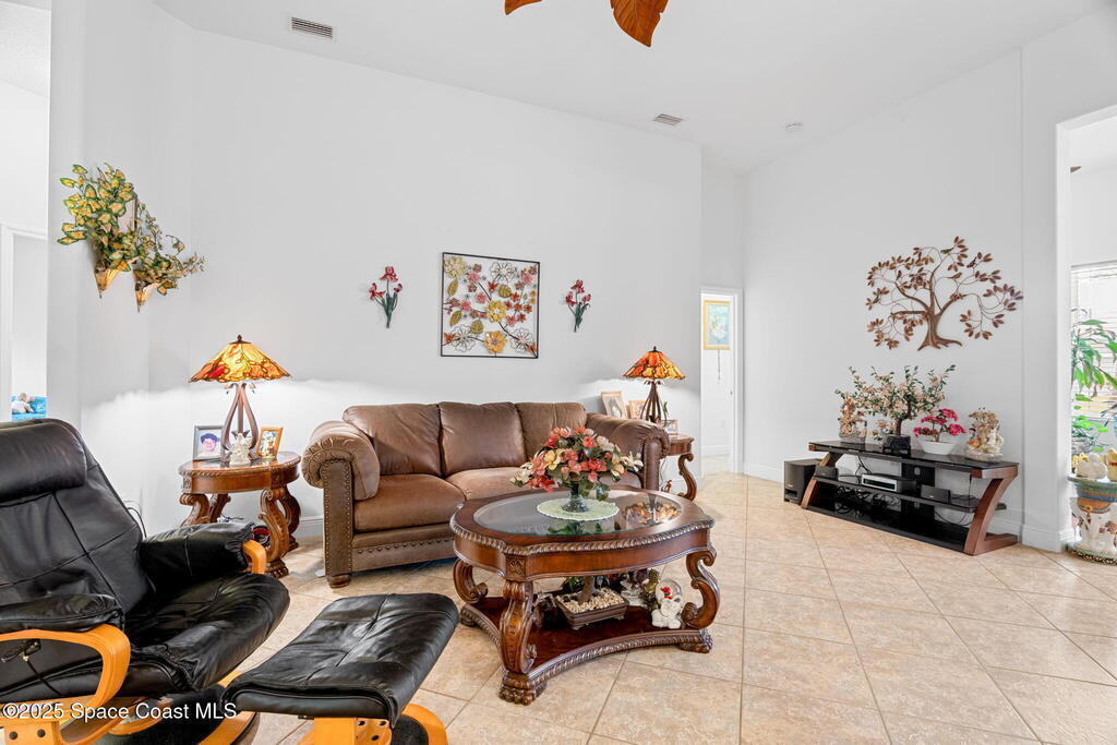 Gorgeous 4/3/2 home with upgrades galore. Tile throughout. Kitchen has granite counters and breakfast bar. Owners suite has a huge walk-in closet, roman tub and walk in shower. Vaulted ceilings. Open floor plan. Split Bedrooms. Meticulously maintained. New A/C in 2025. Garage Screen. Beautiful yard with fruit trees and flowering trees. Do not let this one get away. Some household items may be available for purchase. Room sizes approximate. Potted plants DO NOT convey.