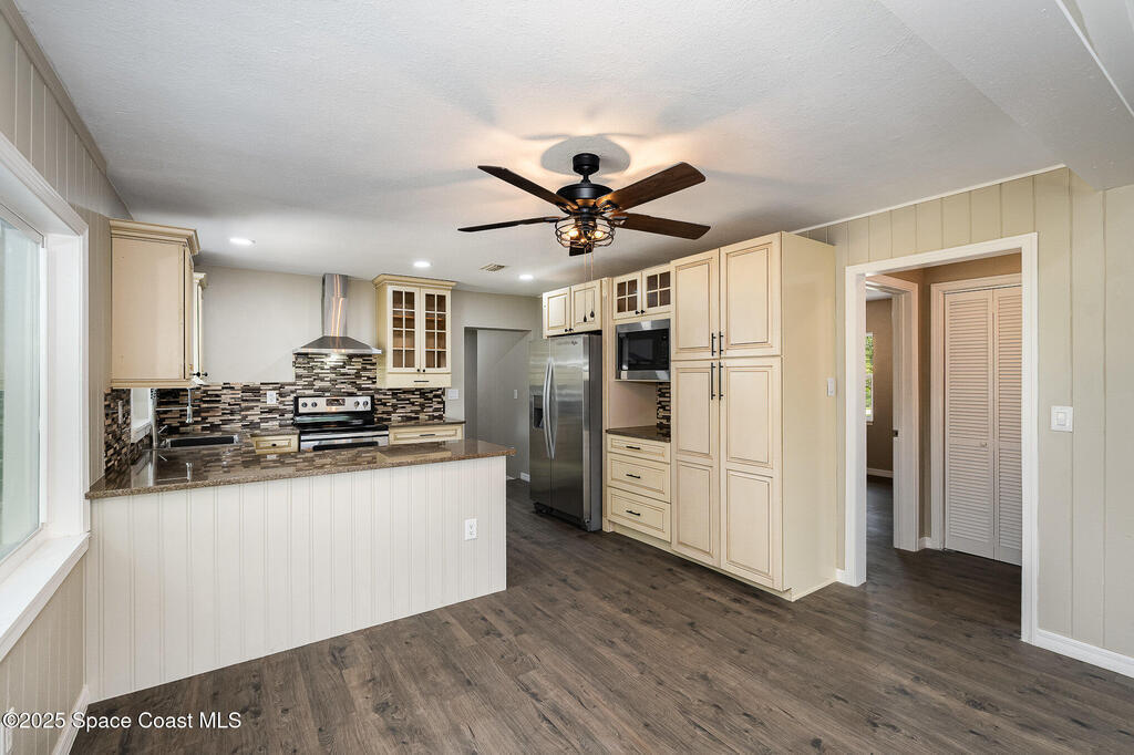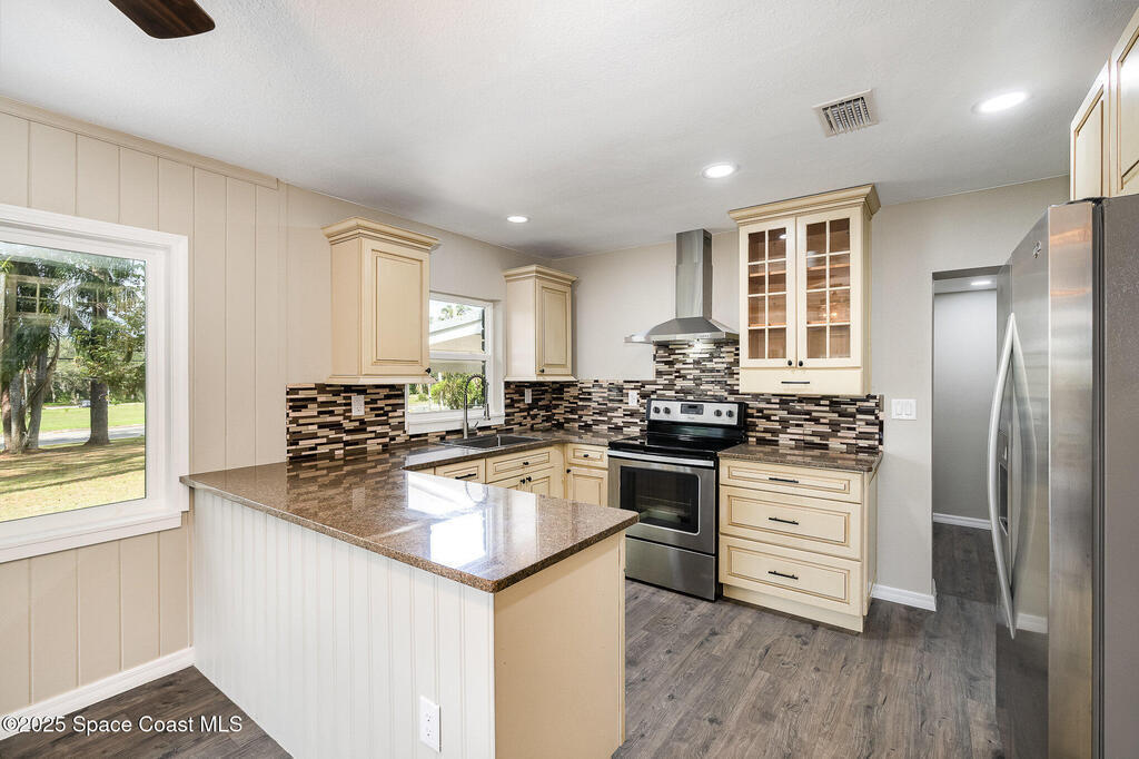 Welcome Home! This beautifully updated three-bedroom, two-bath home is nestled on a spacious .63-acre lot, providing the perfect balance of privacy and open space. Featuring a brand-new metal roof and newer air conditioning, this home combines modern comfort with a charming country feel. Enjoy peace of mind with all-new PEX plumbing and updated electrical (220 amp) throughout. Impact windows ensure safety and energy efficiency, while the blown insulation keeps your home cozy year-round. Relax on the inviting front porch or entertain friends as you watch rocket launches from your own backyard. All this while being just a short drive from stunning beaches and shopping options, ensuring you can enjoy both rural tranquility and easy access to local amenities. Don't miss this unique opportunity to experience country living at its finest while remaining close to the coast.