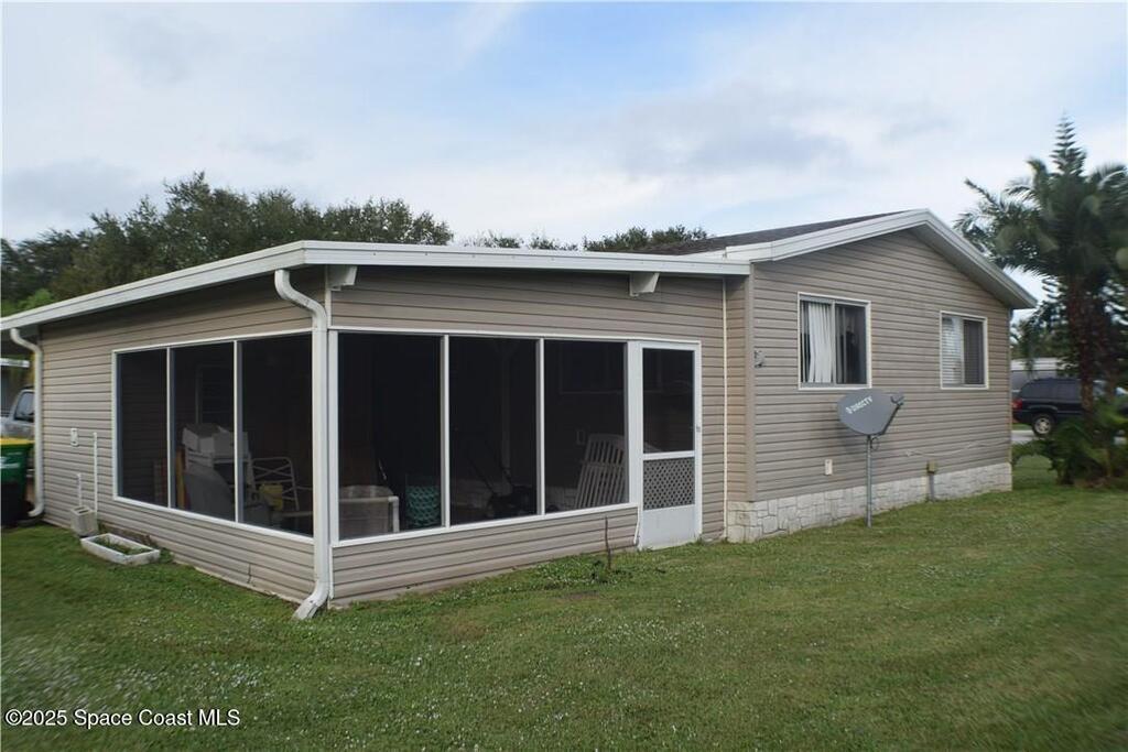 This cozy corner-lot home is full of potential and ready for your personal touch and TLC!Featuring 2 bedrooms plus a bonus room--perfect for an office or guests. The updated kitchen includes stainless steel appliances and custom shelving, opening to a spacious living area.There are a few soft spots in the floors, but they're easy to repair.Enjoy a screened patio, 1-car carport, and a laundry area with washer and dryer.Located in Barefoot Bay, where you'll have access to pools, a clubhouse, river dock, golf, restaurants, and deeded beach access.Come see it and make your offer today!