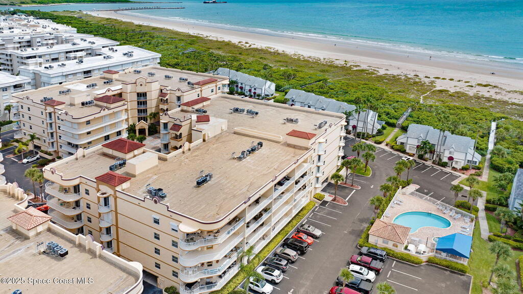 Coastal Living Just Steps from the Sand! This spacious penthouse unit with 3-bedroom, 2-bath condo on the top floor offers the perfect blend of comfort and location. Relax on your private balcony with ocean views and enjoy front-row seats to spectacular rocket launches! Inside, you'll find a well-designed layout with generous living space, ideal for a primary residence, beach getaway, or investment property. The open-concept living and dining areas provide a welcoming space to relax or entertain. Located in a community packed with amenities, including private beach access, multiple pools, jacuzzi, tennis/pickleball/racquetball courts, and a clubhouse with fitness center. A private assigned parking garage and two elevator access add extra convenience. Situated close to shopping, dining, and public transportation, this is your chance to enjoy beachside living. Schedule your private showing today and start living the beach life!