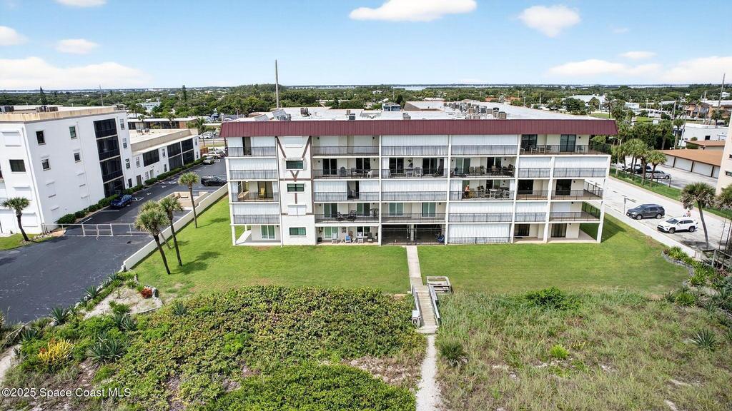 Beachside living at its finest! Priced under appraised value. Best priced condo on the beach! This beautifully updated, move-in-ready condo, with oceanfront living is ready to move in! Awaken to spectacular sunrises in this fully renovated 2-bedroom, 2-bath condo in Cocoa Beach! Situated in the central heart of the island, this modern, spacious end unit has Ocean views on a wonderful wrap-around patio with a storage shed protected by wrap around hurricane shutters. (New in 2023). Watch rockets galore from this luxury condo patio. Wonderful beach walks, vibrant sunrises and a private beach access await you! Ground floor. No elevator needed, easy for taking pets out your door! Low condo dues! The complex has recently undergone concrete restoration. All assessments have been paid in full. All reports are current and attached in ''documents''. This is a highly maintained complex ensuring long-term beauty and sustainability. (See additional Features and remarks)