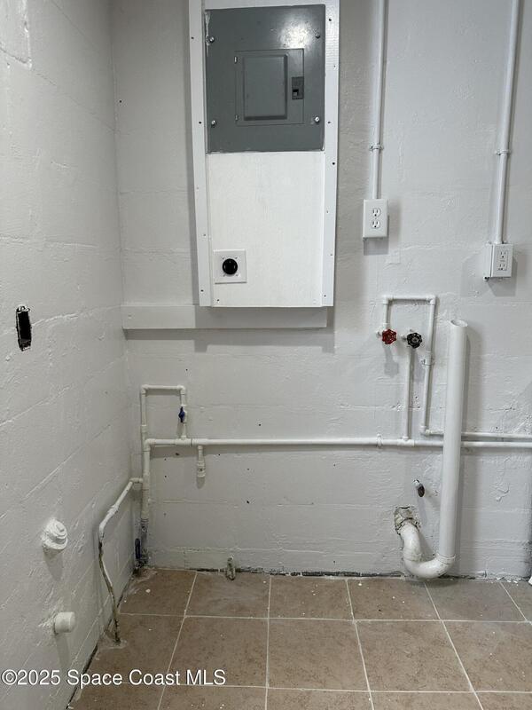 Business Potential in Titusville!This is a versatile 1, 444 sq. ft. commercial building, zoned business professional. Situated on a prominent 0.41-acre corner lot, this property offers both visibility and convenience. Step inside to find a spacious open layout, complete with a kitchen and 1 & 1/2 bathrooms, providing flexibility for meetings, events, or office use. The building also features 2 A/C units, washer and dryer hookup and a roof just 5 years old, giving you peace of mind for years to come. Extras for the buyer include ceiling fans, interior doors and tile. Conveniently located in Titusville, FL, this property combines accessibility with potential.