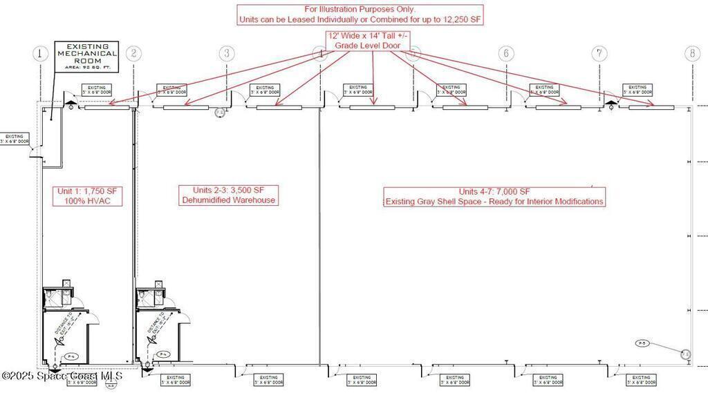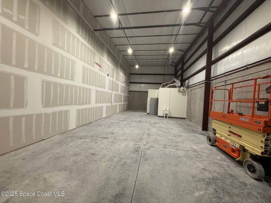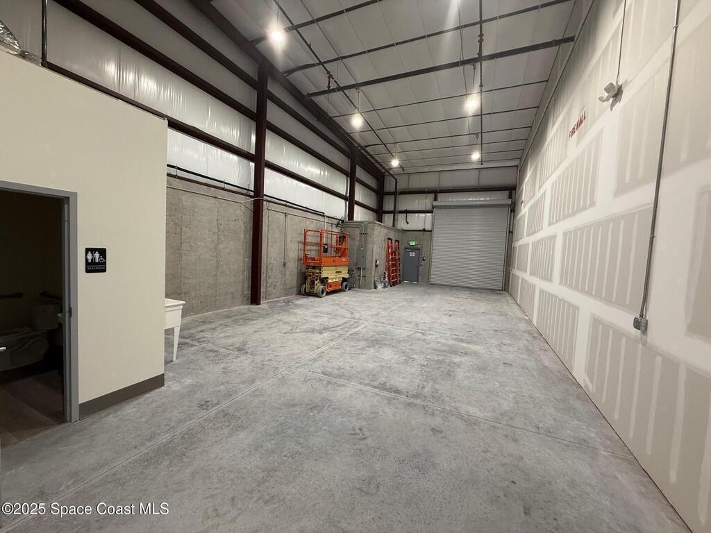 Excellent opportunity to lease a 100% HVAC 1, 750 SF warehouse in northeast Palm Bay! Unit dimensions are roughly 25' wide x 70' deep. Interior includes +/- 192 SF office, 1 ADA restroom and est. 1, 518 SF warehouse. Warehouse has concrete flooring and est. 19' - 21' clear height throughout. There is one 12' wide x 14' tall +/- grade level door. Unit is 100% fire sprinklered. Utilities include City Water/Sewer, Fiber Nearby, and 3-phase 120/208v 800 Amp FPL Electric. There are 3-reserved parking spaces + 5 common spaces. Property is strategically positioned just off of Palm Bay Road which is the primary area connector between Interstate 95, Babcock Street and US1. Surrounding employers include L3Harris, ABC Supply, Tibbetts Lumber and Leonardo DRS to name a few. Lots of schools, restaurants, healthcare and childcare in the area. Make this the future home for your business today!