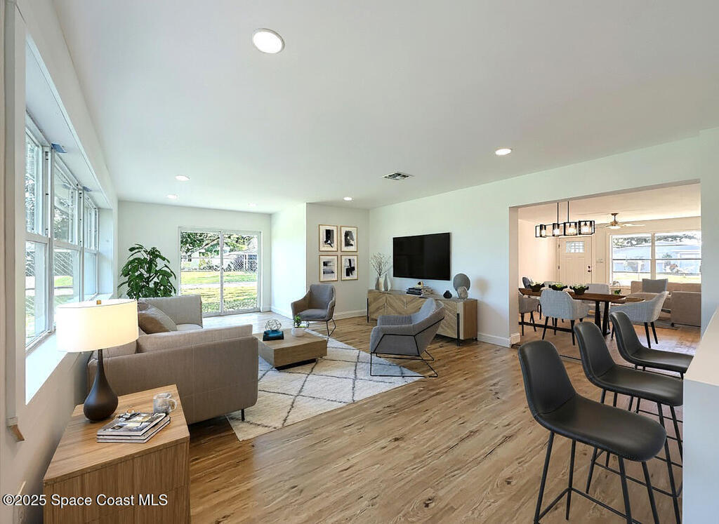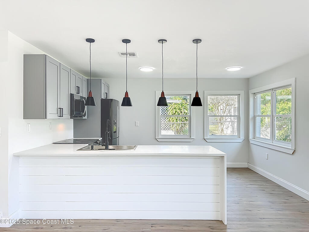Fully remodeled 3-bedroom, 2-bath home with 1, 567 sq. ft. in a quiet Melbourne neighborhood just 10 minutes from the beach! Enjoy the modern upgrades throughout, including a brand-new kitchen with cabinets, countertops, appliances, and fixtures, plus fully renovated bathrooms and stylish vinyl flooring. The open-concept layout connects the living, dining, and kitchen areas, creating an inviting space for everyday living or entertaining. Outside, you'll find a covered carport, extra driveway parking, fenced yard with green space, and a storage shed. With no HOA, you'll enjoy extra flexibility and lower monthly costs. Conveniently located near Downtown Melbourne, Eau Gallie, shopping, dining, and the Intracoastal--this move-in-ready home is waiting for its new owners!