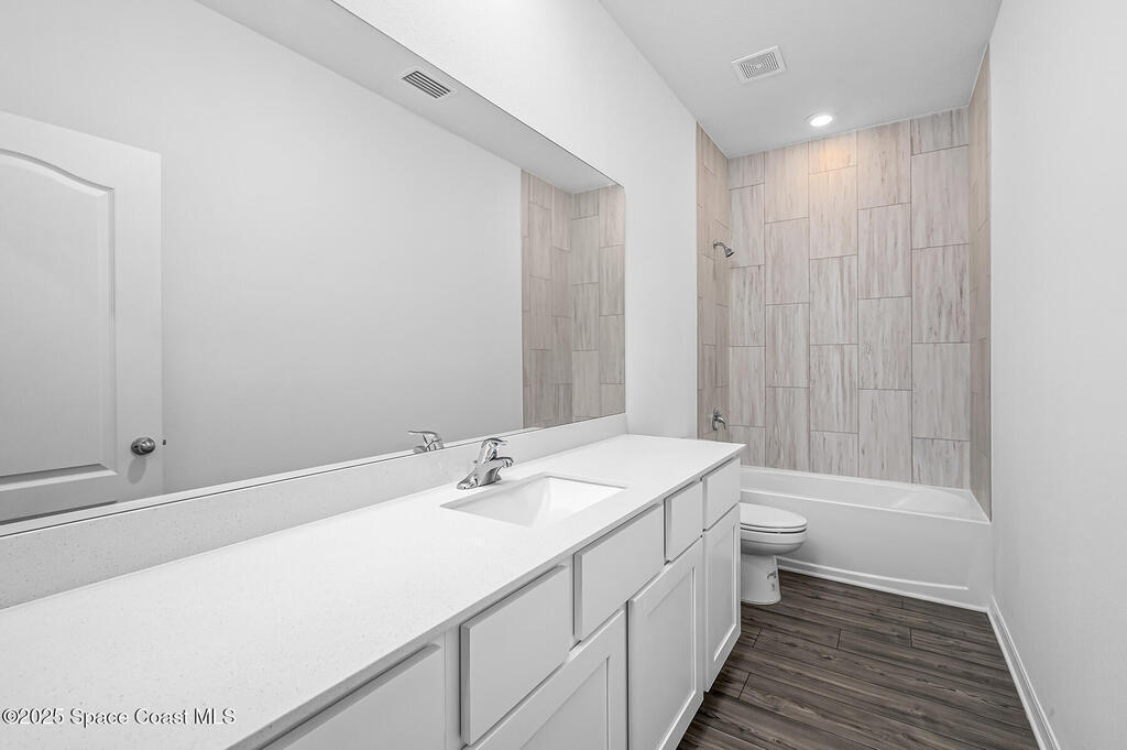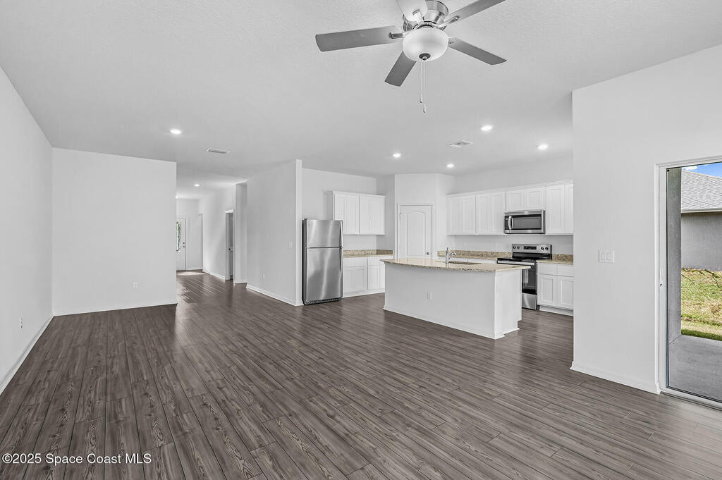 A long foyer welcomes guests into a grand open floor plan with the Coral at Palm Bay! This exceptional home features five bedrooms and three bathrooms along with a host of upgrades! The chef-ready kitchen will include stainless steel appliances, granite countertops and a walk-in pantry. What better way to spend a beautiful evening than gathering with family and friends under the covered patio looking out into your beautiful back yard with two native trees that will grow to provide shade! Whether you're sharing stories over dinner or enjoying a friendly card game, this space is perfect for making lasting memories. Your home will quickly become the go-to spot for spending time with family and friends! **Appliance models subject to availability**