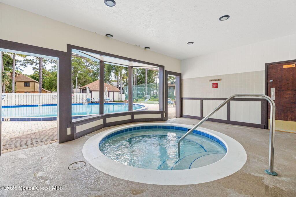 This rare end unit offers exceptional privacy and a versatile layout, complete with a cozy carpeted loft that can serve as a home office, guest lounge, or creative lifestyle space. Rich hardwood floors, a covered lanai and soaring vaulted ceilings create an open, inviting atmosphere, while the convenience of an in-unit washer & dryer adds everyday ease. Just minutes from Melbourne Square Mall and quick access to I-95, the location balances peaceful living with effortless connectivity. Within Greenwood's gated community, residents enjoy resort-style amenities including a sparkling pool, hot tub, sauna, tennis & racquetball courts, shuffleboard, fitness center, and a vibrant clubhouse. Association fees cover essentials like cable, internet, lawn care, pest control, insurance, and even roof replacement, ensuring worry-free ownership.
