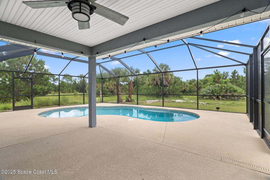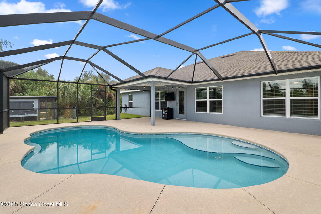 Welcome to your dream retreat! This stunning single-story home, built by Adams Homes in 2019, sits on a spacious 0.23-acre lot, offering the perfect blend of modern comfort and peaceful privacy with vacant lots surrounding the property . The split floor plan, features a luxurious primary suite with a walk-in closet, double vanity, and garden tub/shower. This open-concept layout is ideal for entertaining, with a modern kitchen flowing seamlessly into the dining and living areas. Enjoy Florida living year-round with your 2021 saltwater pool, complete with a screen enclosure. This natural landscape property also includes a custom built fenced-in chicken coop.