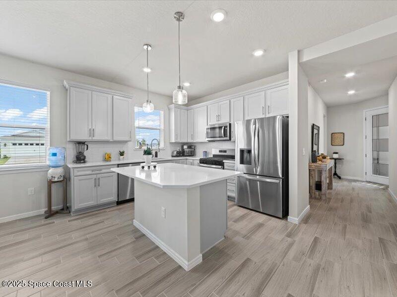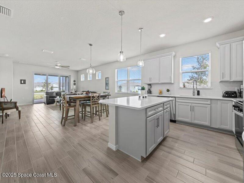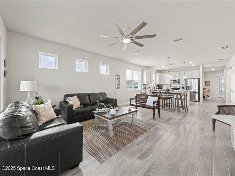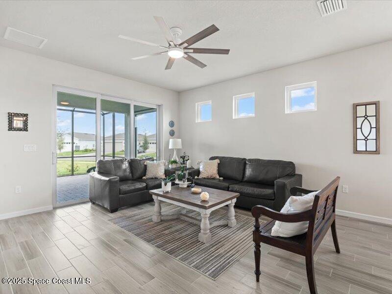 Welcome to 8967 Splashing Drive, Melbourne, FL 32040 - a stunning home in the sought-after Del Webb 55+ resort-style community. This beautifully maintained 3-bedroom, 2-bath residence offers modern comfort and stylish upgrades throughout. The open-concept floor plan is perfect for both entertaining and everyday living, highlighted by elegant wood plank tile flooring, upgraded doors, and carefully selected ceiling fans and pendant lighting.The chef-inspired kitchen features sleek quartz countertops, ample cabinetry, and a spacious island, making it the heart of the home. Enjoy the seamless flow from the kitchen and living areas to your private screened-in enclosure with paver flooring--a perfect retreat for morning coffee or evening gatherings.Additional features include a two-car garage and thoughtful design touches that elevate both form and function. Resort-Style Living at Del WebbAt Del Webb, every day feels like a vacation. Residents enjoy access to
