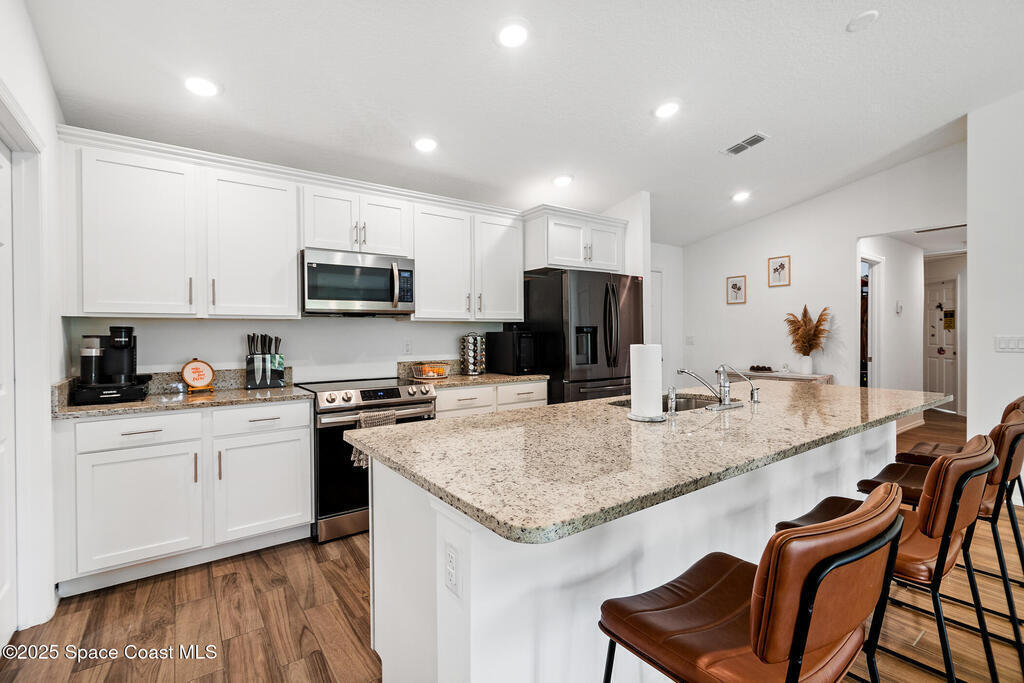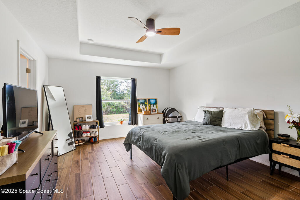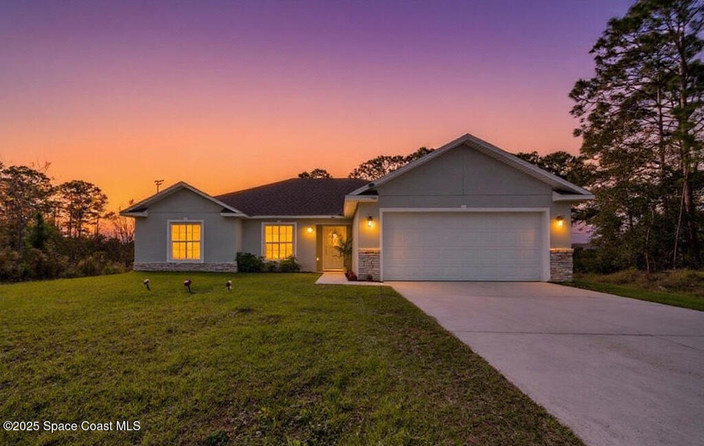 Discover effortless family living in this like-new 2023 Palm Bay home! Offering four comfortable bedrooms and two well-designed bathrooms, this single-family residence provides the space your family needs. The modern kitchen, a true hub, features durable granite countertops, stainless steel appliances, and bright white shaker cabinets. Enjoy easy maintenance with stylish tile flooring throughout. The custom master bedroom closet offers a touch of personalized luxury. With the convenience of a two-car garage and unparalleled proximity to Odyssey Charter Jr/Sr School, this move-in-ready property offers the ideal combination of practicality and modern style. Don't miss your chance to embrace a seamless family lifestyle!