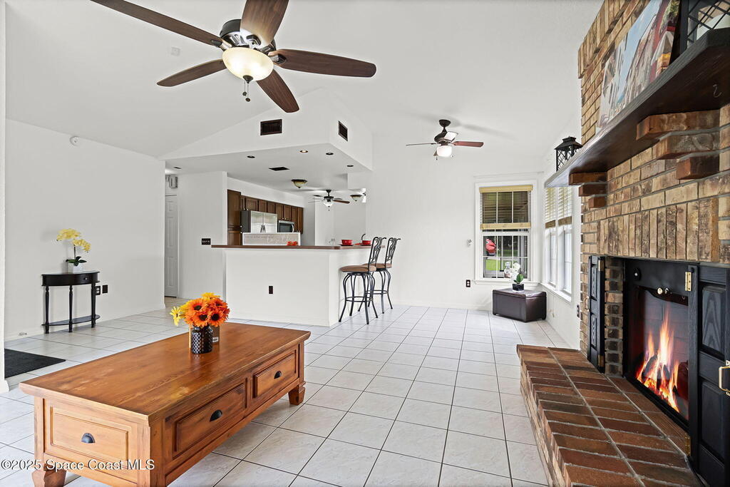 Welcome to this charming 3-bedroom, 2-bathroom corner-lot home nestled in the community of Palamar Oaks Village in St. Cloud. Step inside to an inviting open floor plan with vaulted ceilings, tile flooring, and abundant natural light. The cozy wood-burning fireplace creates the perfect focal point for gatherings or quiet evenings at home. The kitchen offers newer 2024/2025 stainless steel appliances, a breakfast bar, and sliding glass doors that lead to a screened patio overlooking the backyard -- ideal for enjoying morning coffee or evening breezes. All bedrooms are conveniently situated on one side of the home, with the primary suite featuring its own bathroom and a stand-alone shower and California closet. Just down the hall, you'll find two additional guest bedrooms--one featuring a custom California closet--along with a full bathroom. Additional highlights include a 2018 roof, 2021 A/C, 2025 Water Heater, 2-car garage and an indoor laundry room for added convenience.